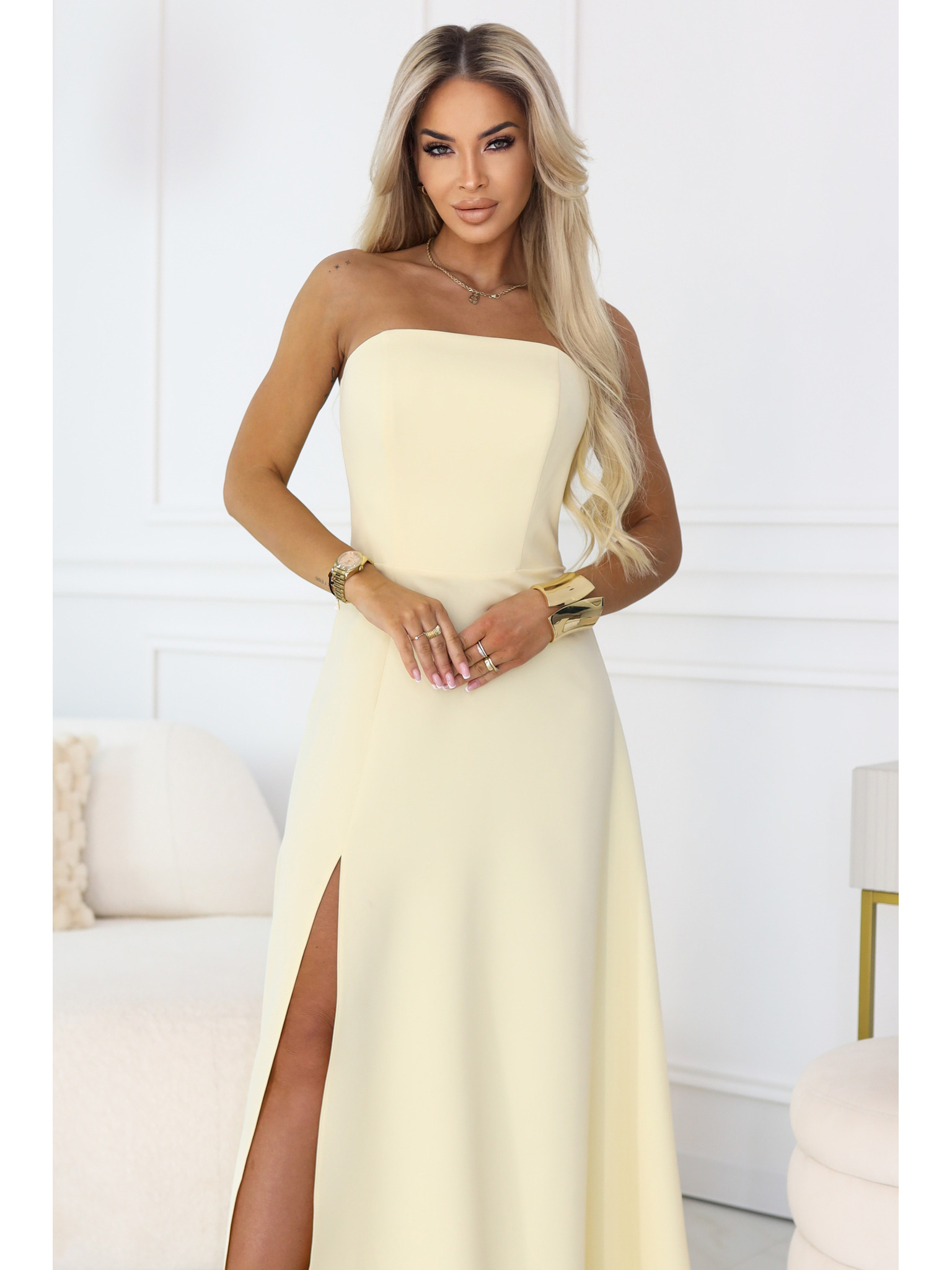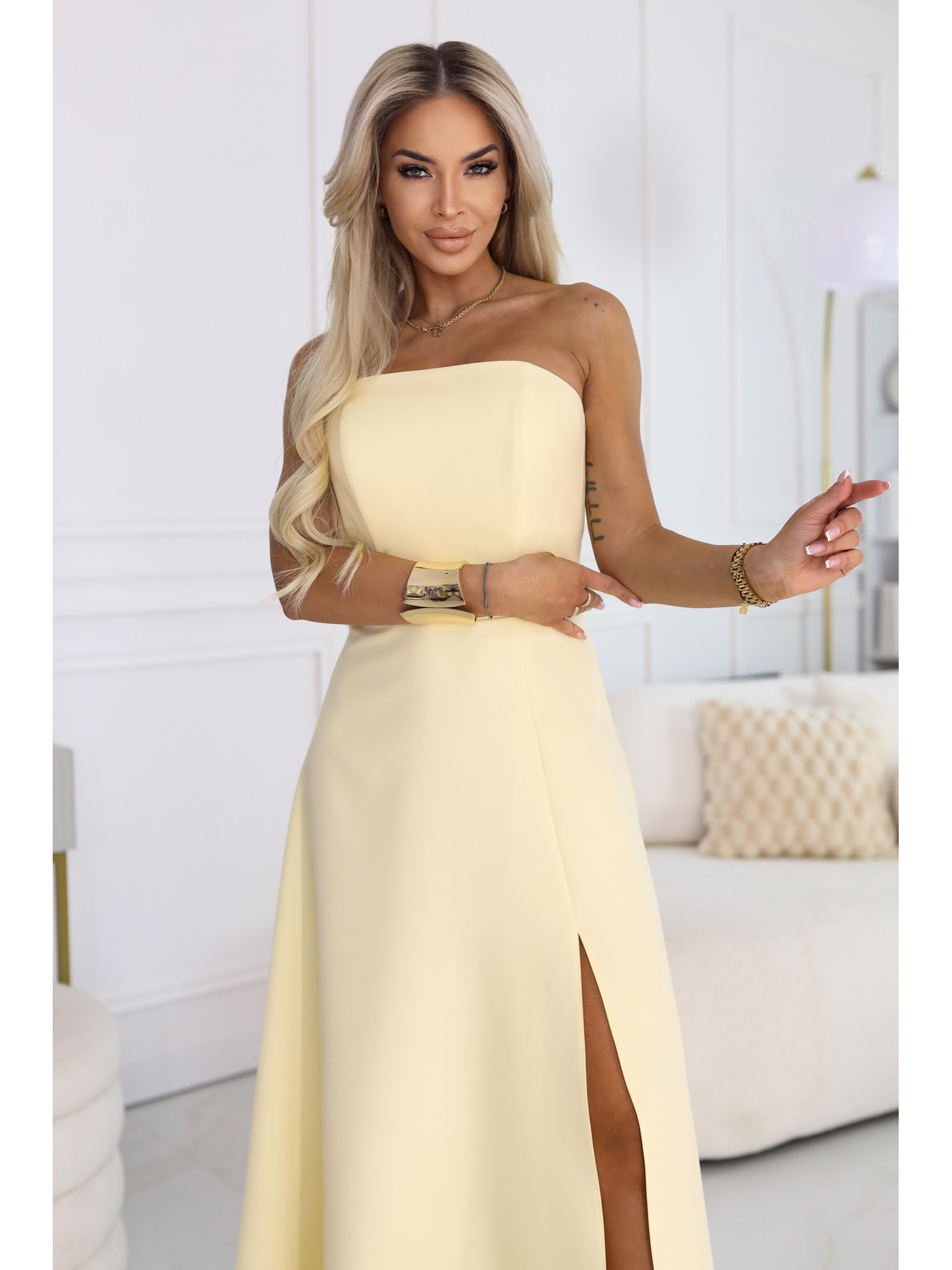 Dolge obleke JENNIFER z razporkom - črne