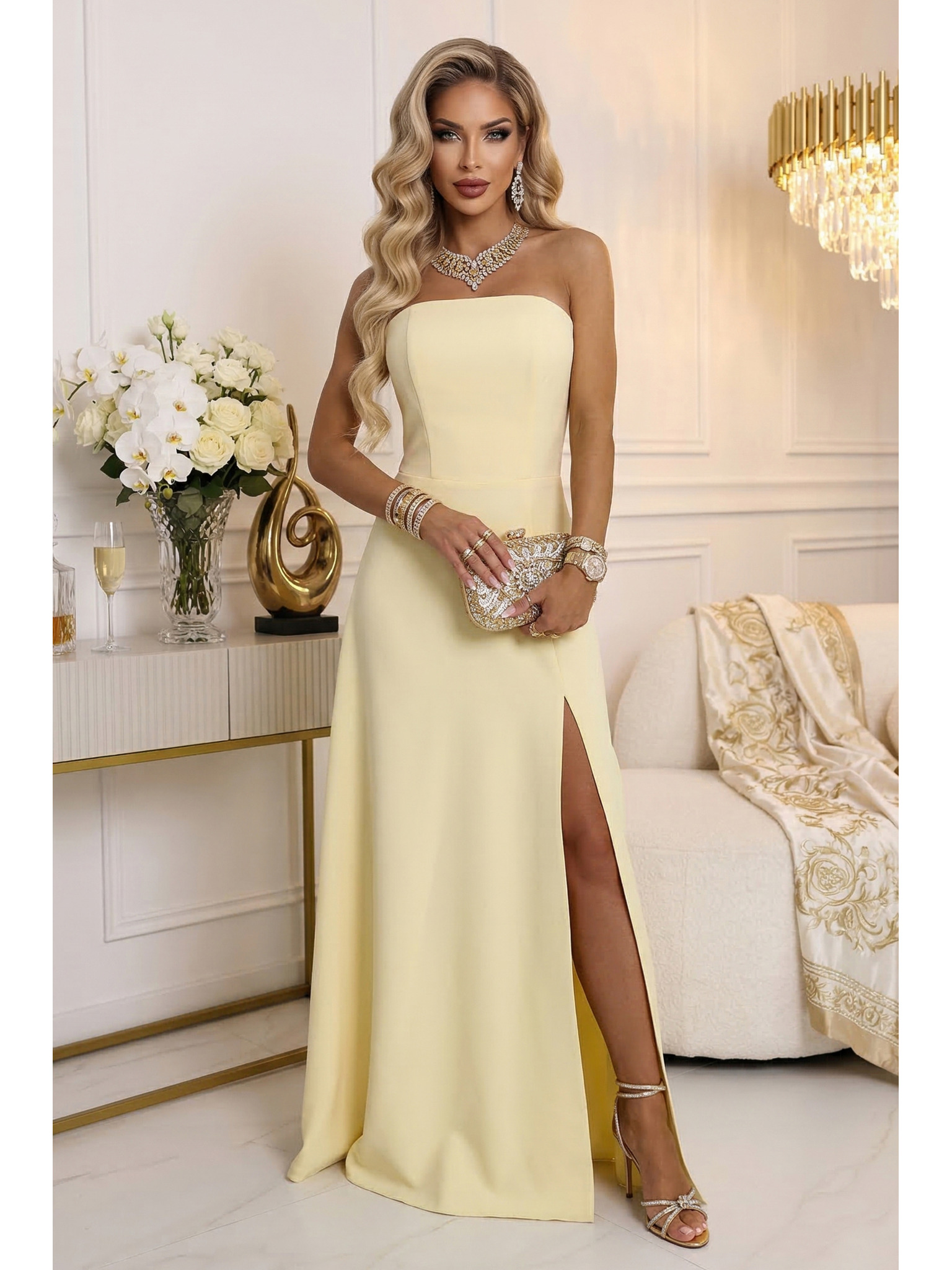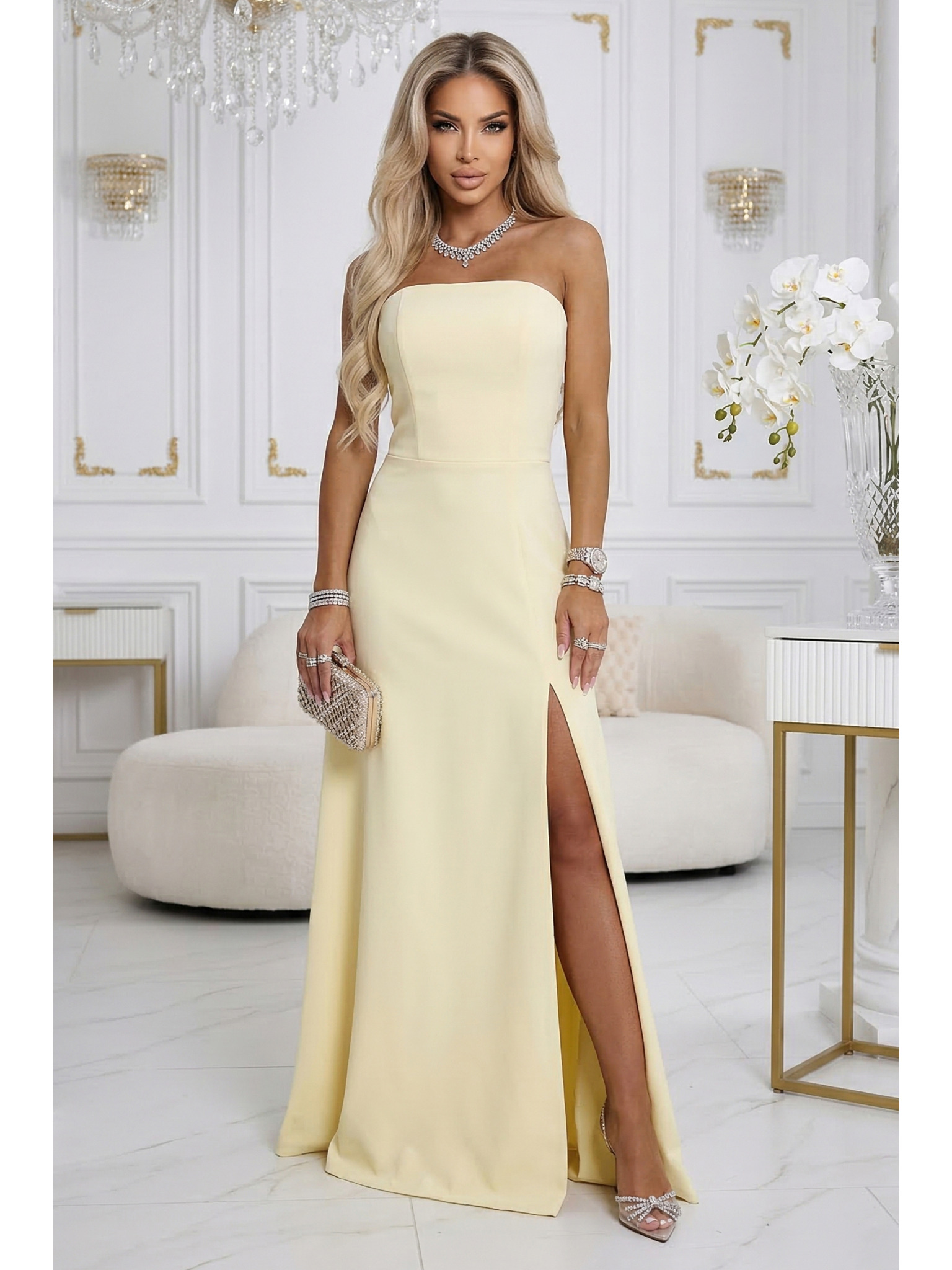 Elegantne dolge obleke s prekrižanim izrezom in razporkom - čokoladnorjave