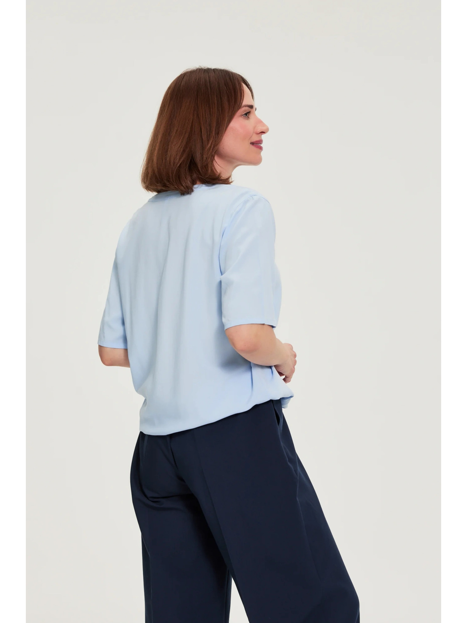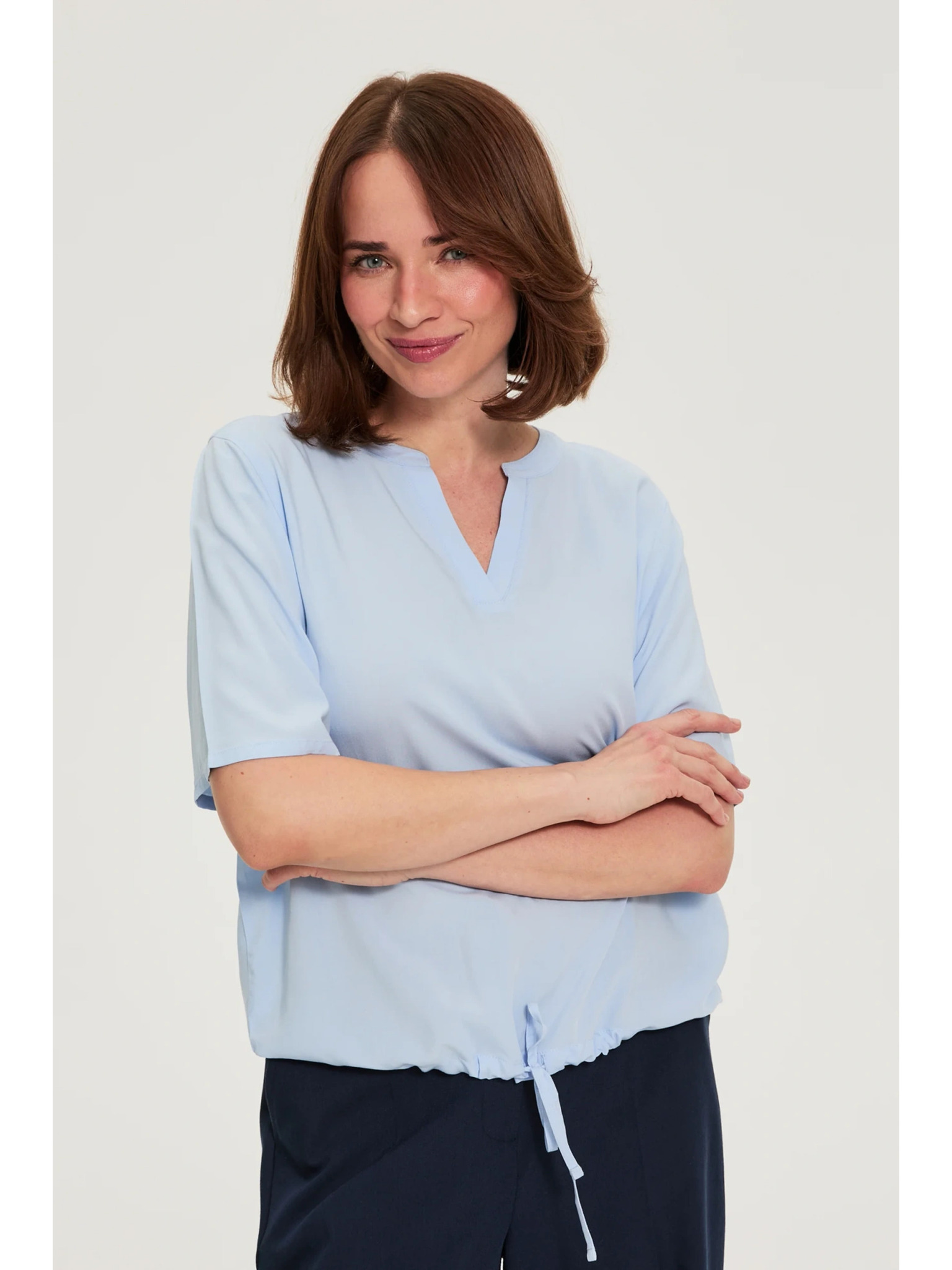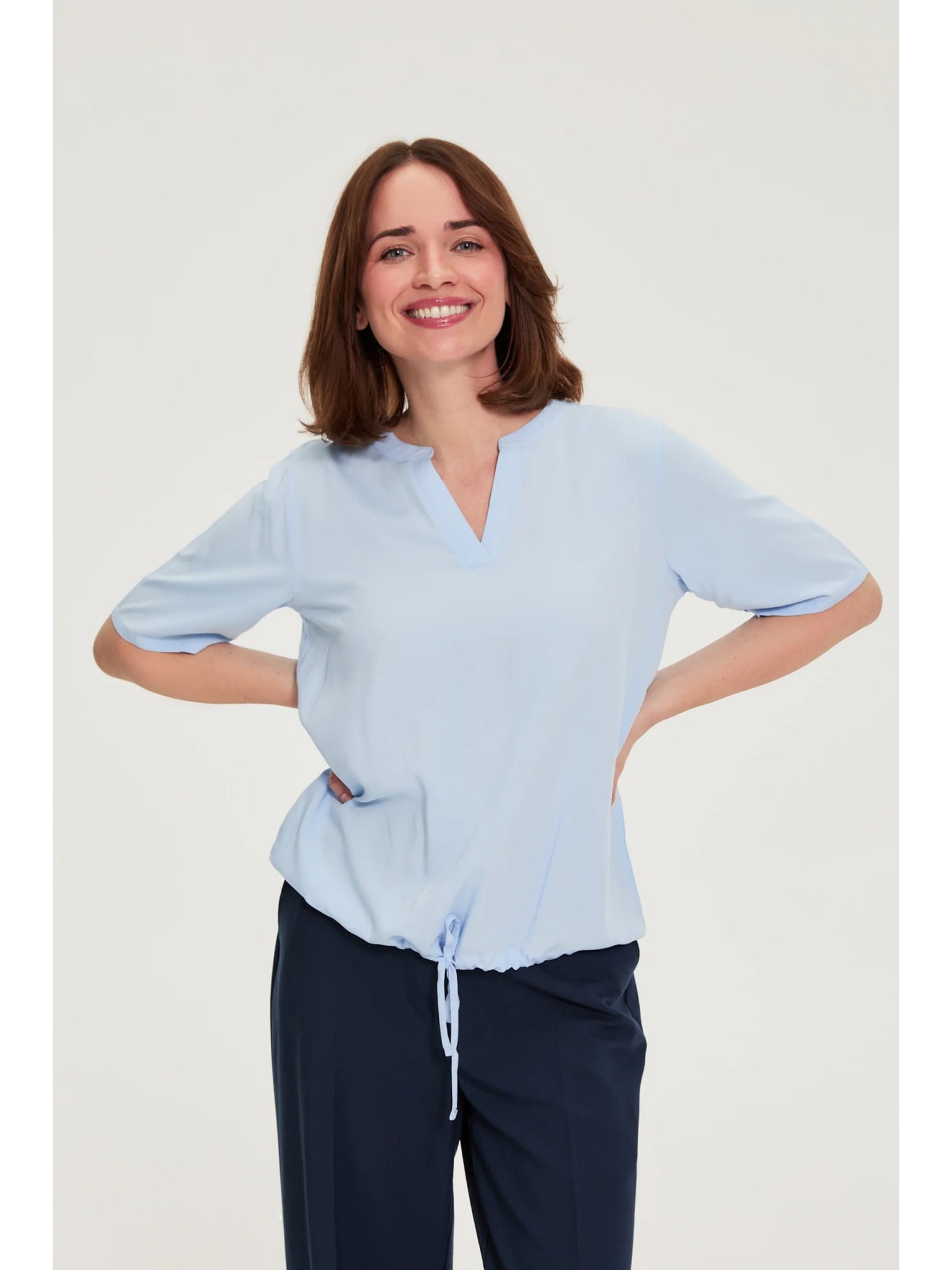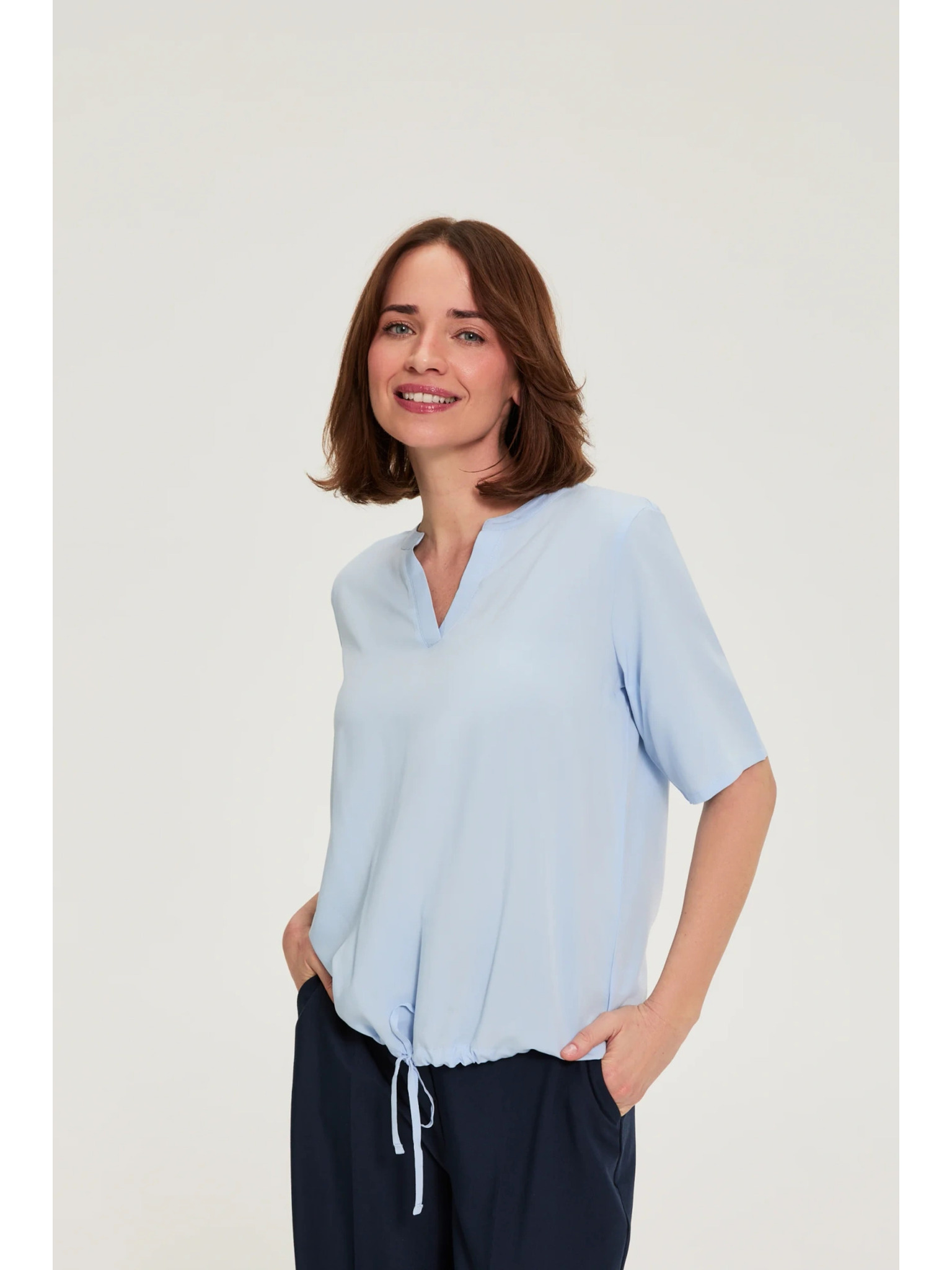 Svetlo modra bluza z vezavo Moodo