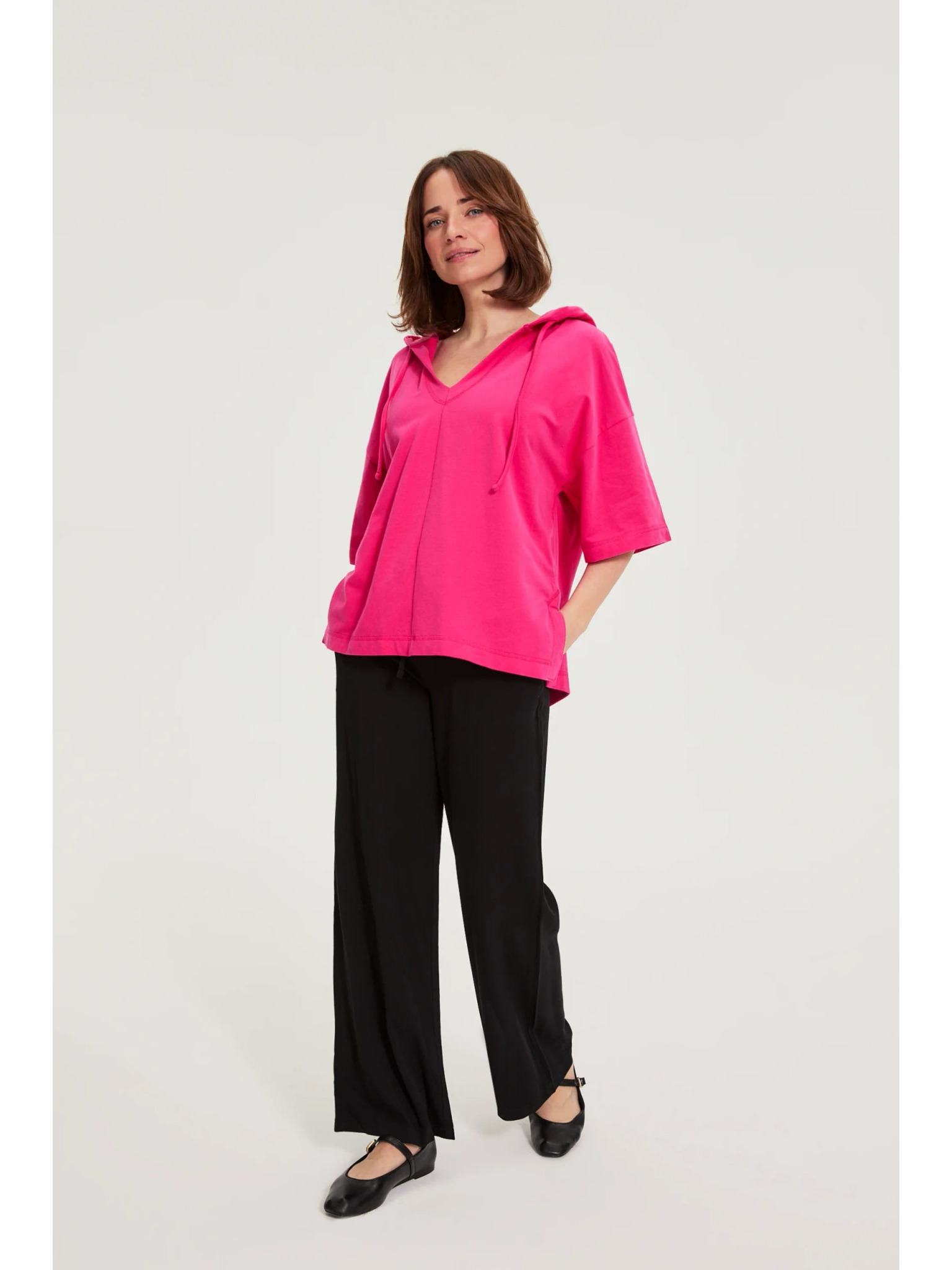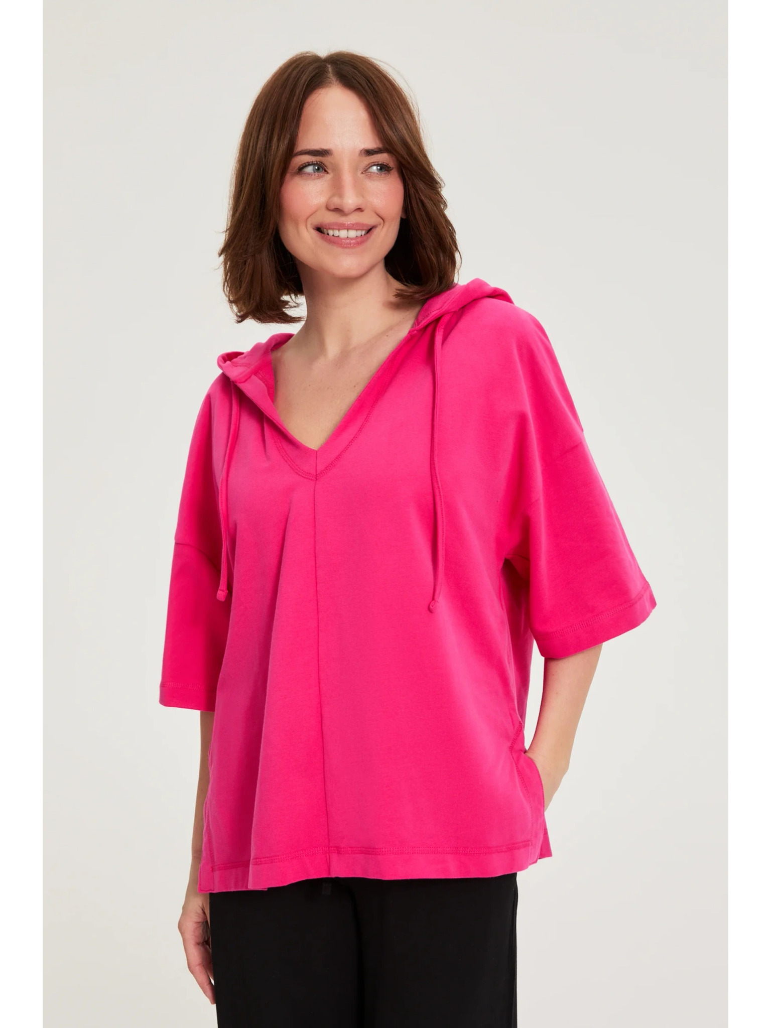Pulover s kapuco in kratkimi rokavi vijolična Moodo