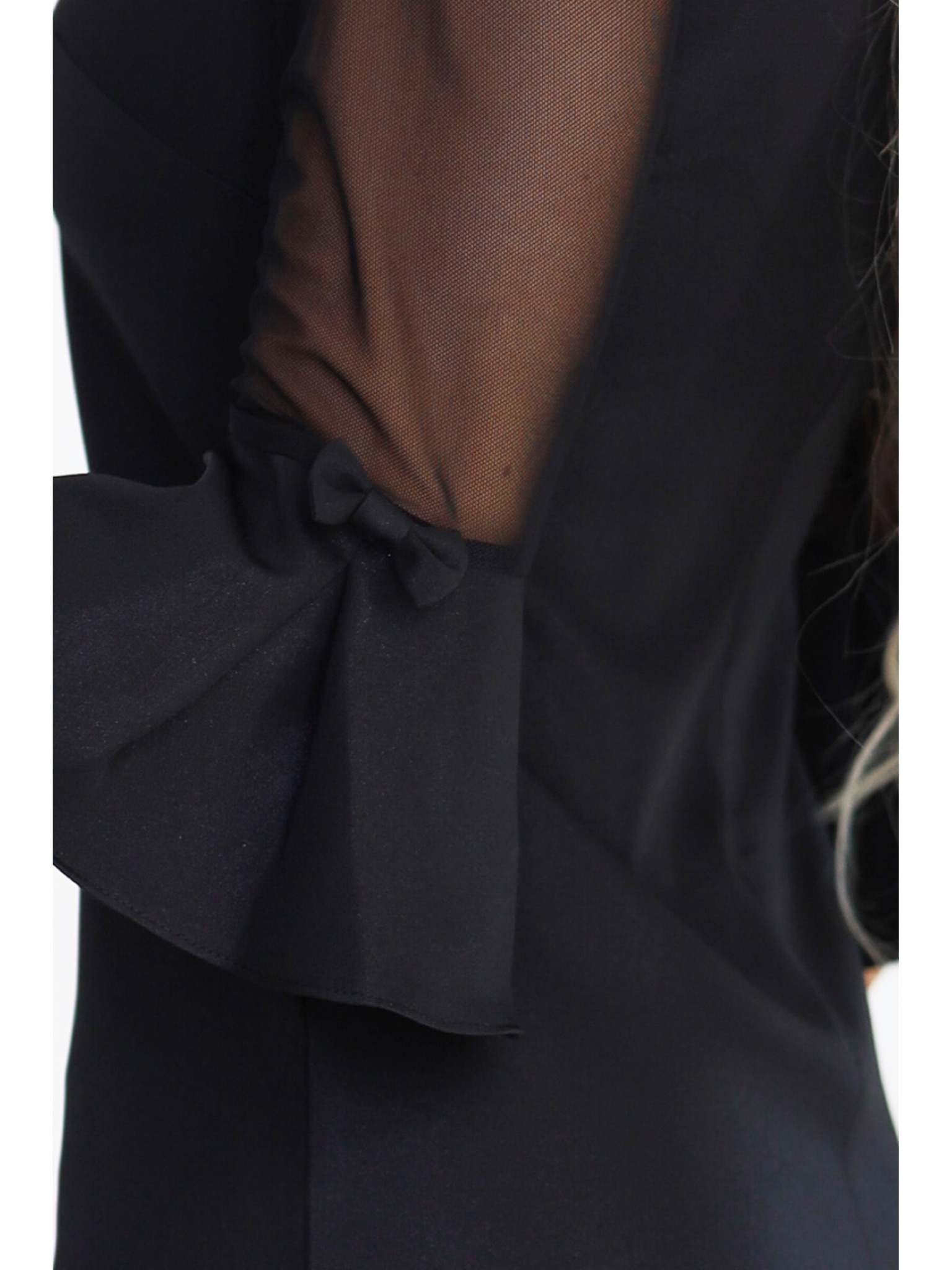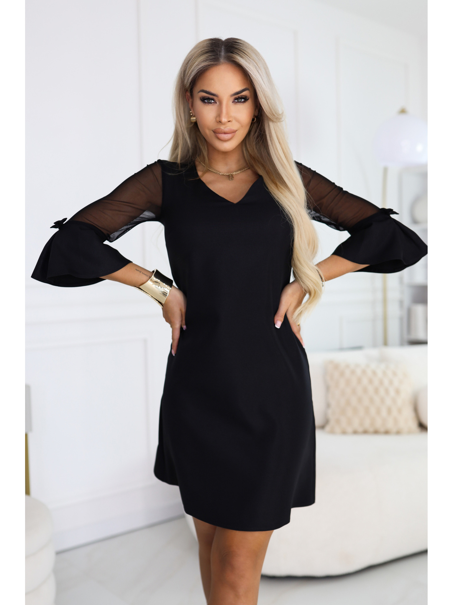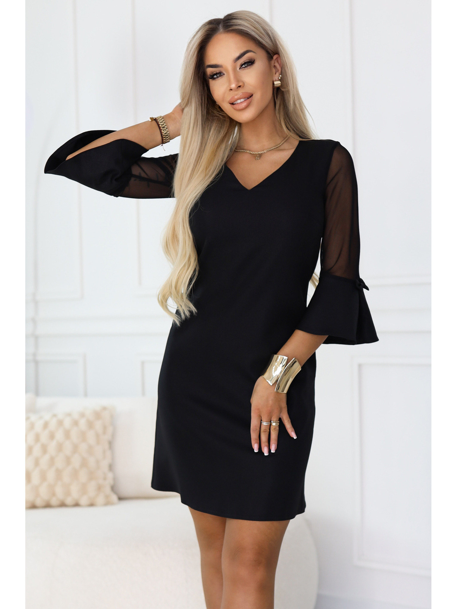 Bleščeča obleka z dolgimi rokavi in dekoltejem - črna Numoco NELA