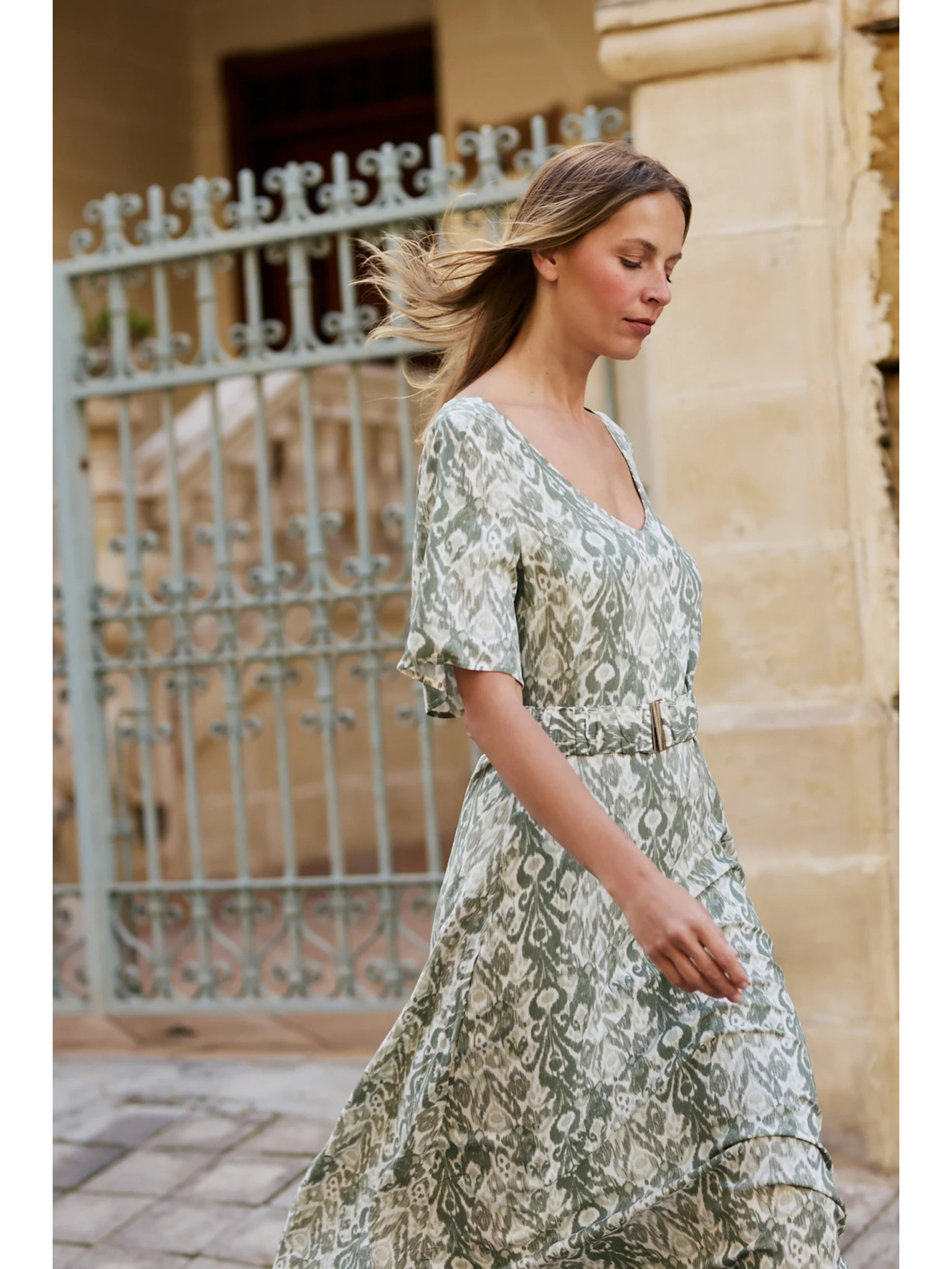 Olivne viskoze obleke Moodo