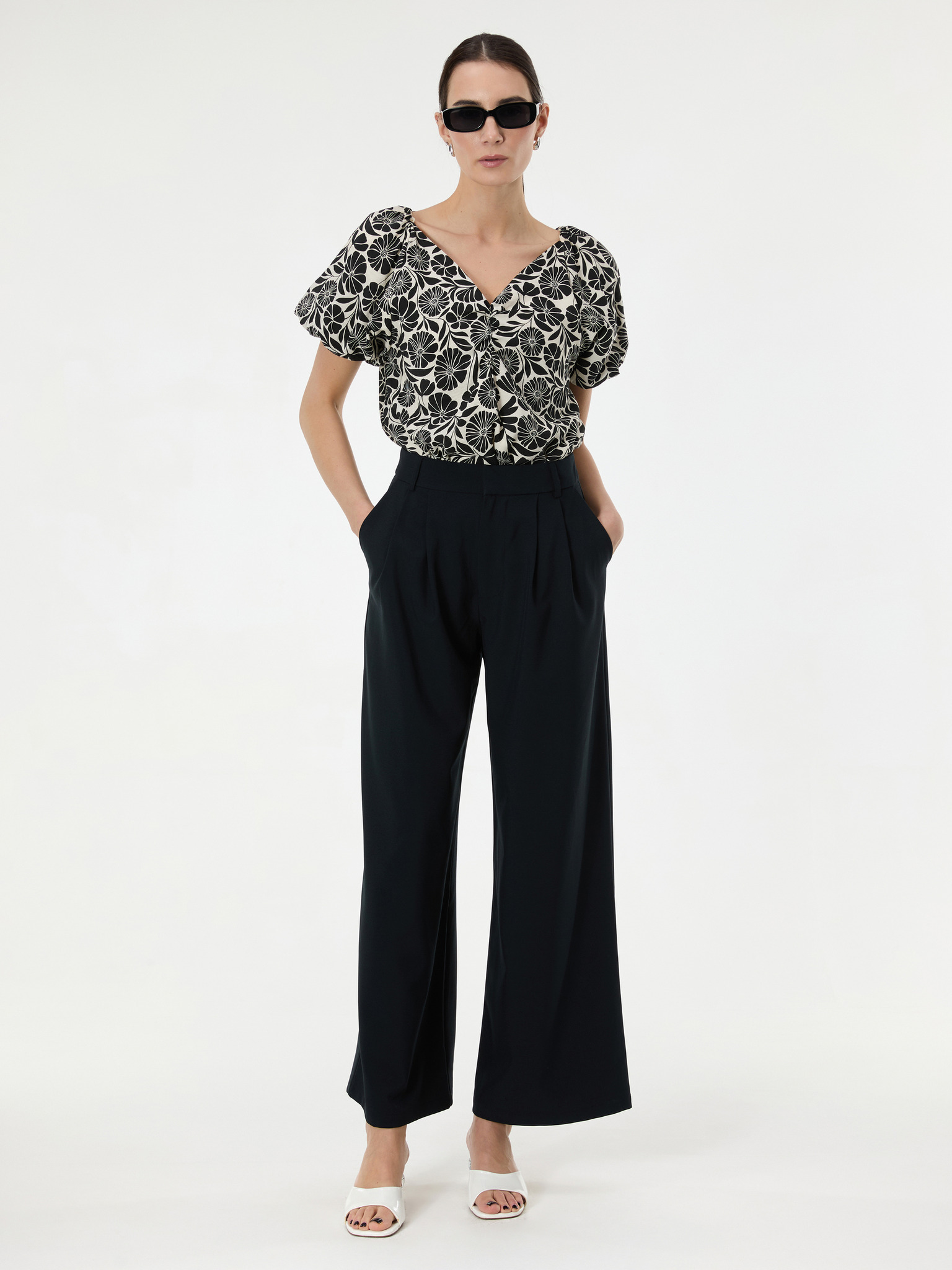 Črna ženska bluza s cvetličnim vzorcem ORSAY