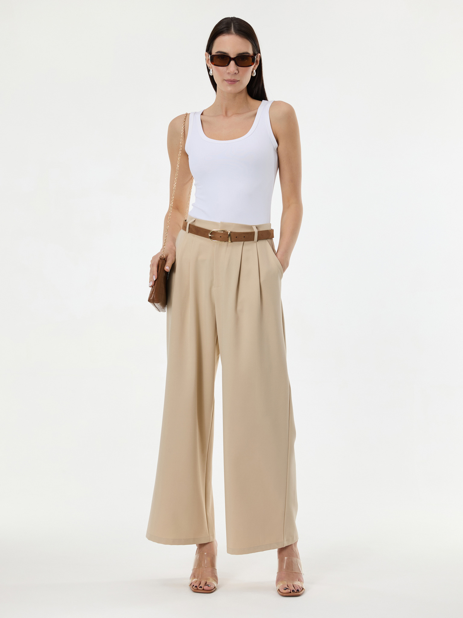 Bežaste hlače z pasom Moodo