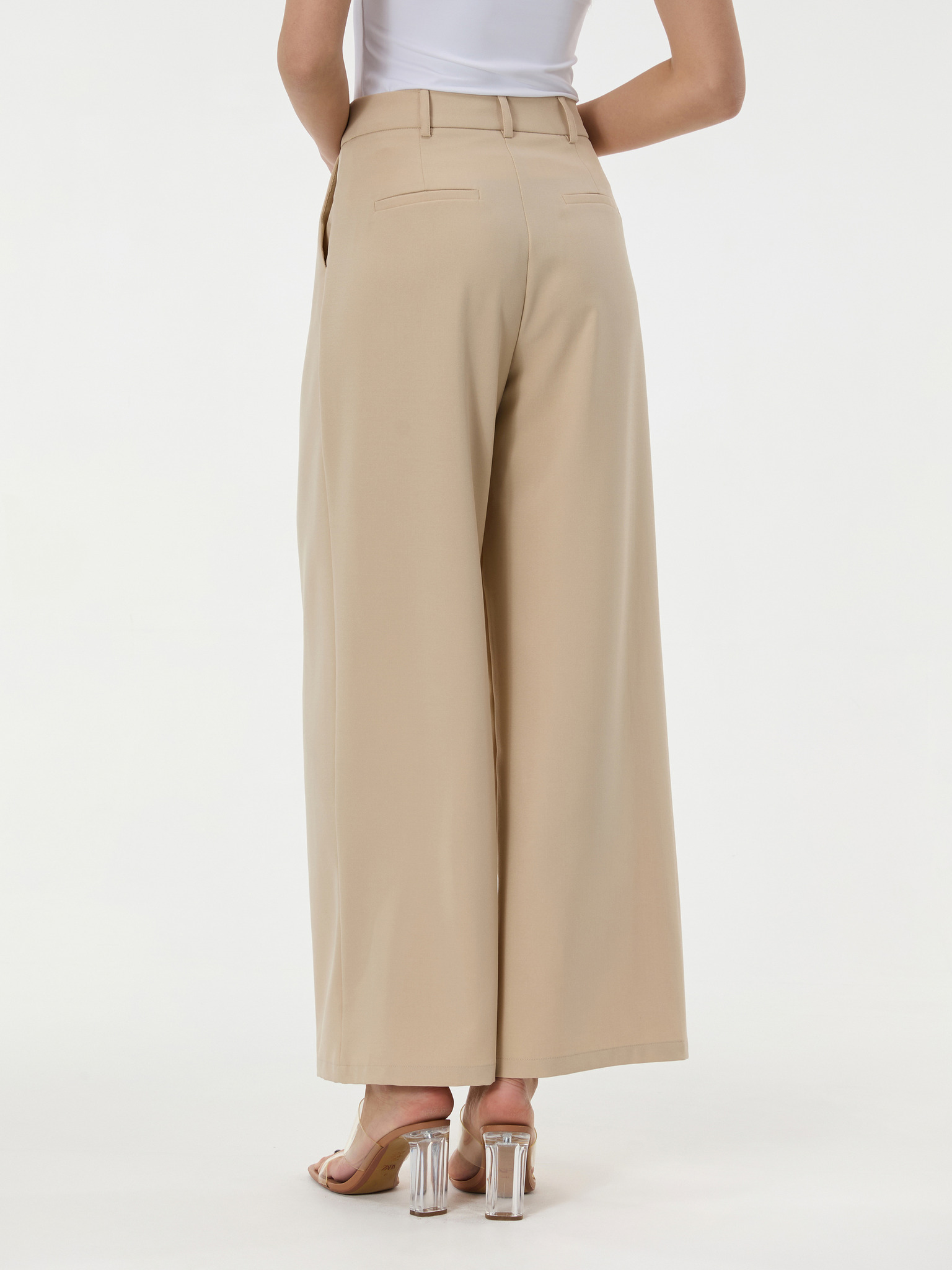 Bež hlače z širokim hlačnicami Moodo