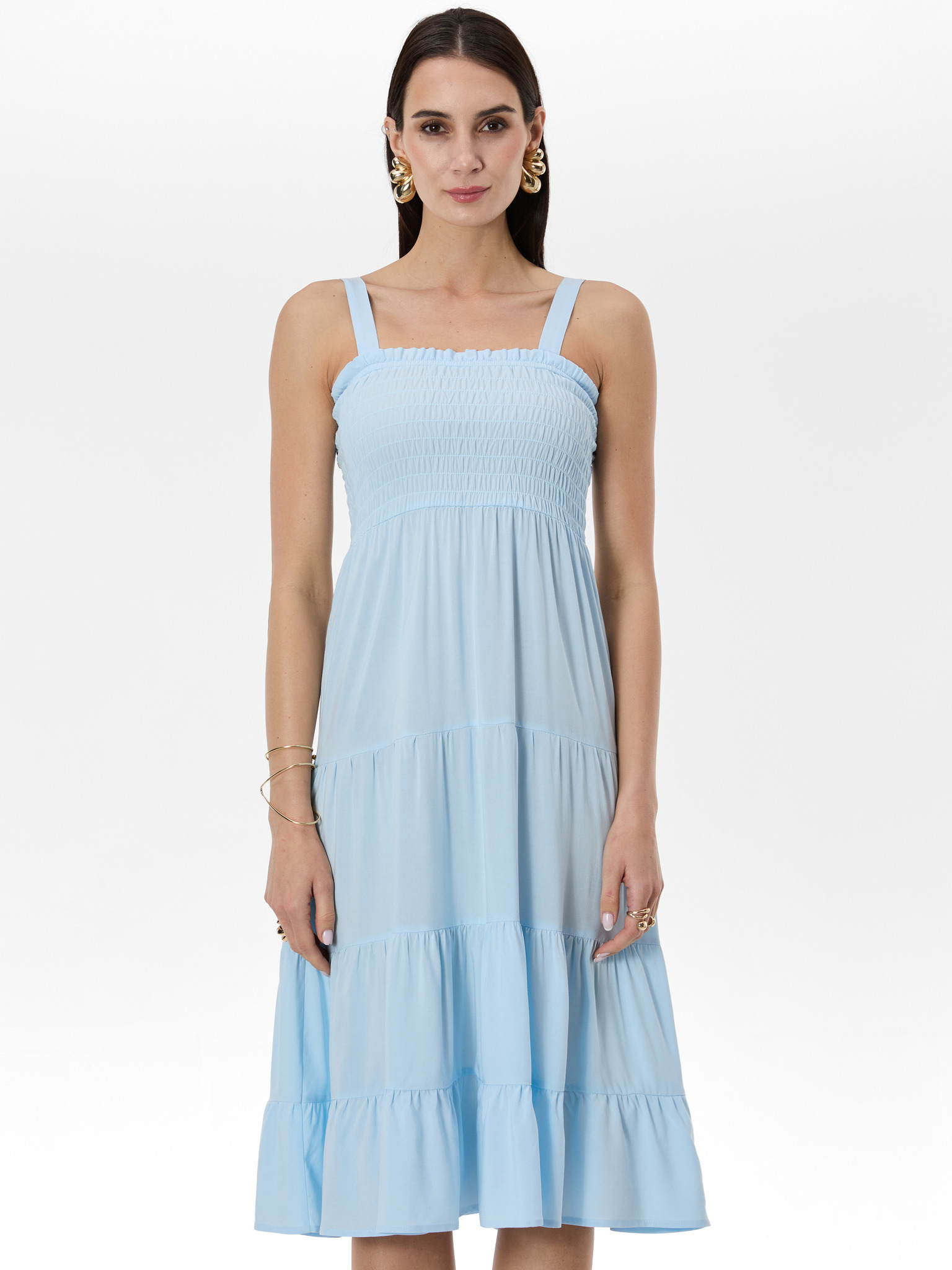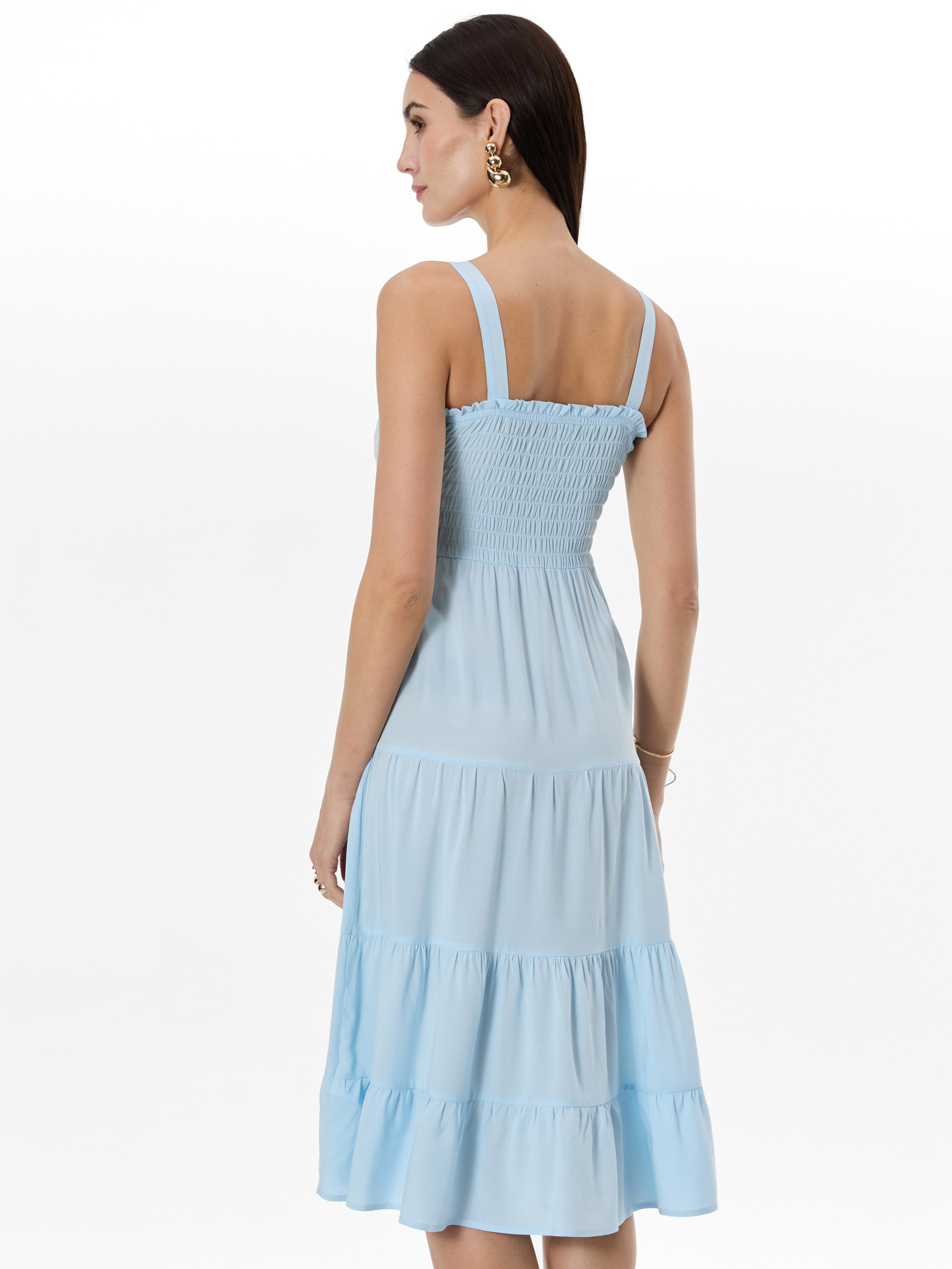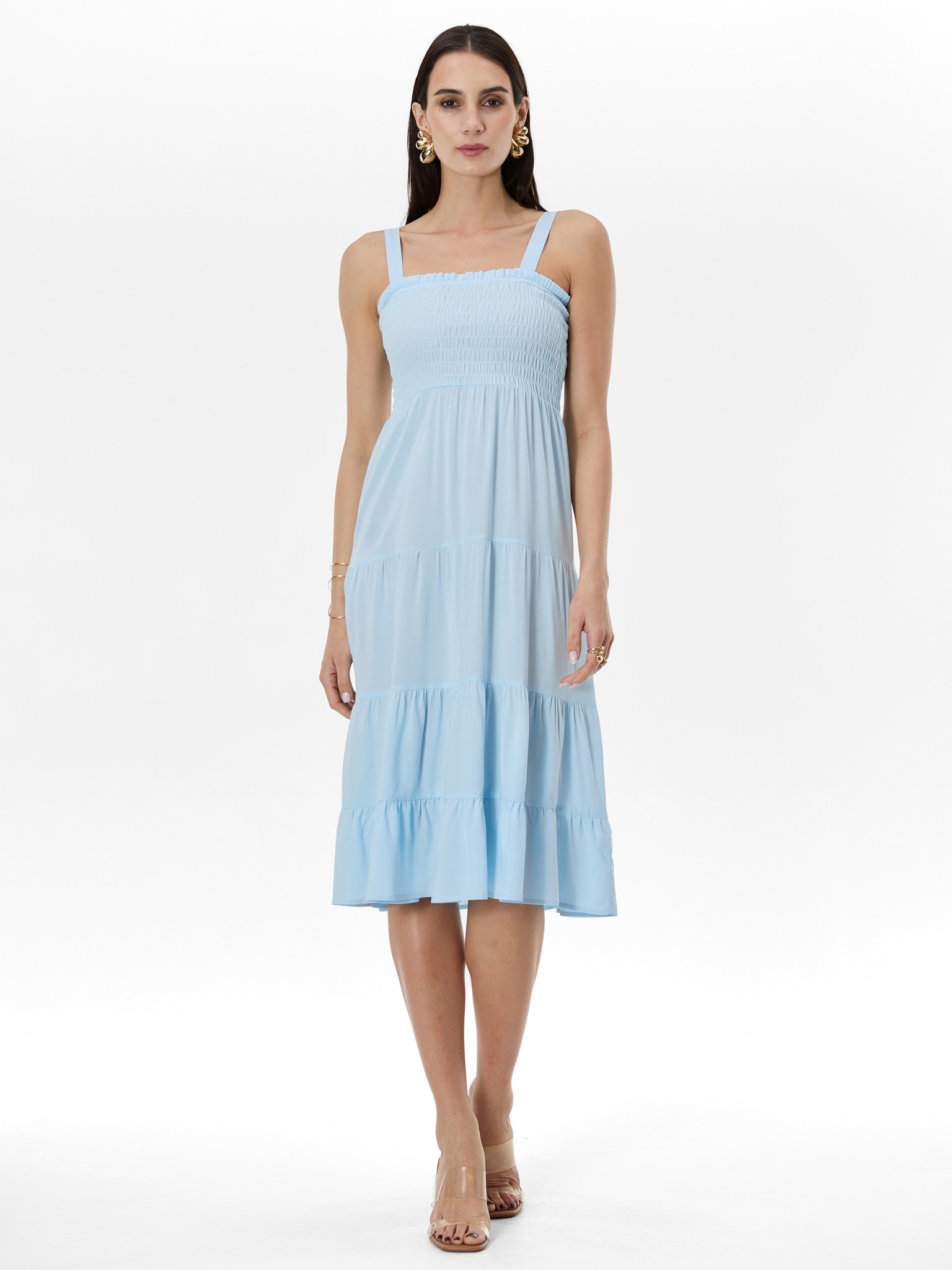 Svetlo modre midi obleke z volani Moodo