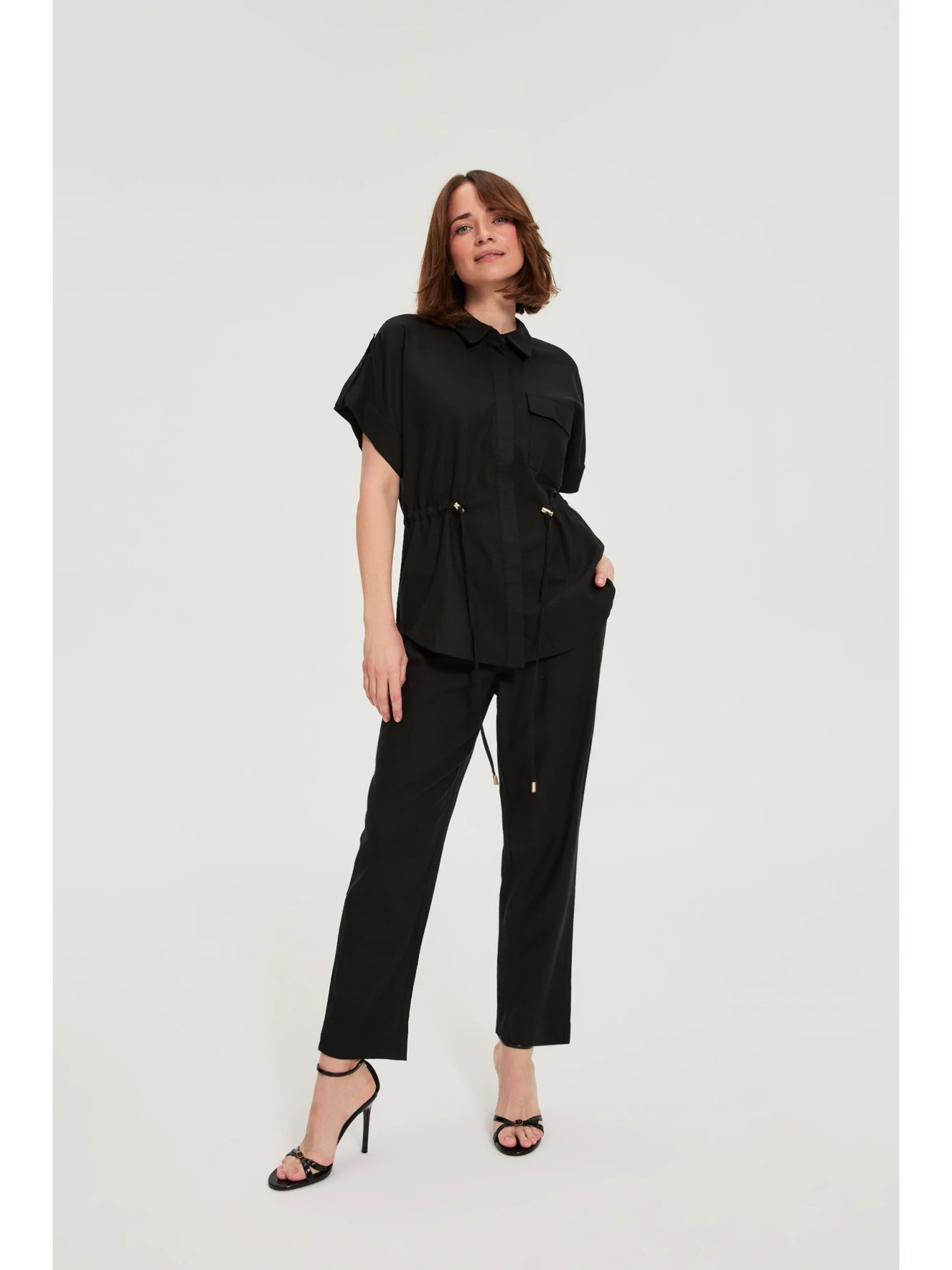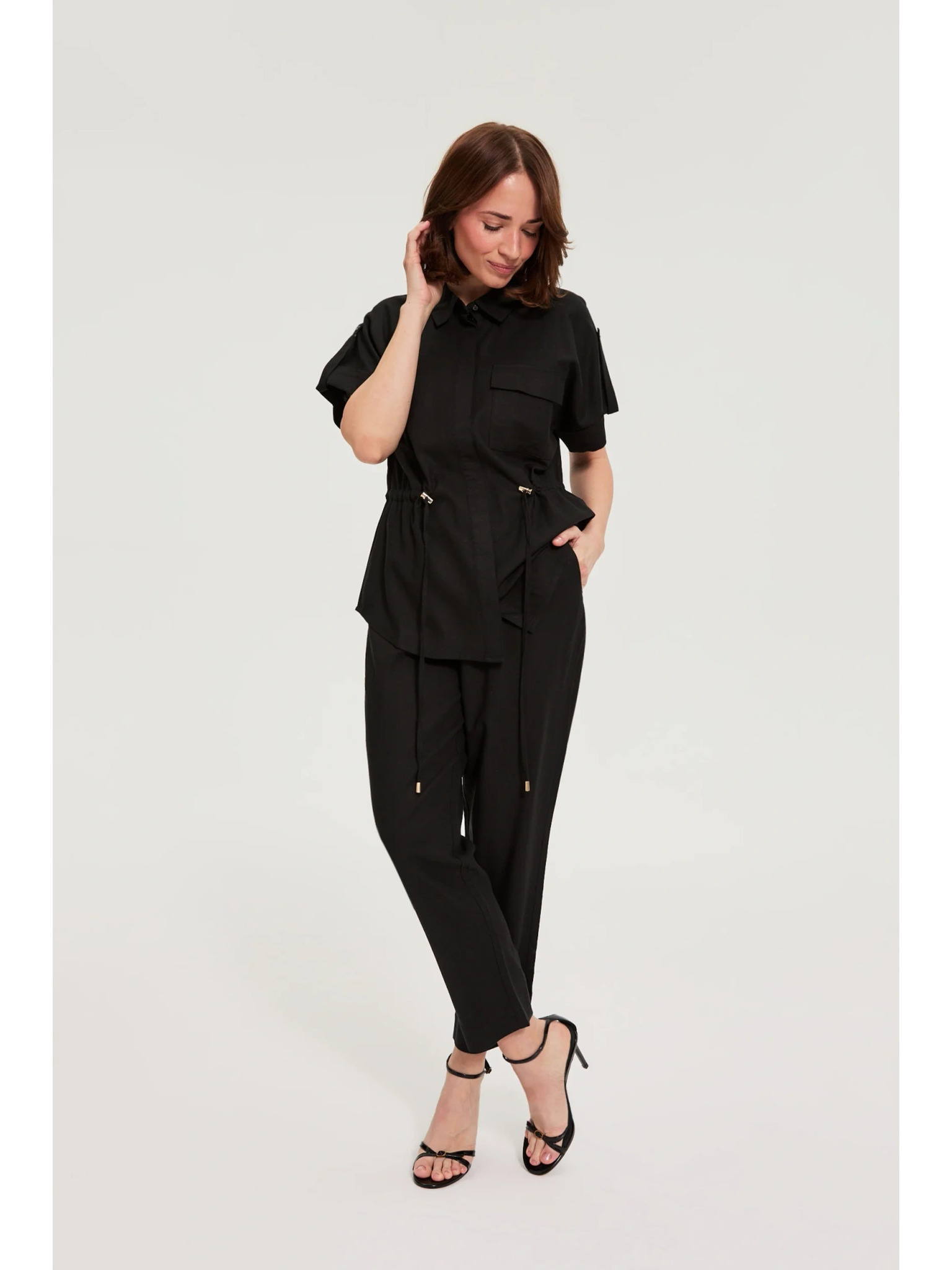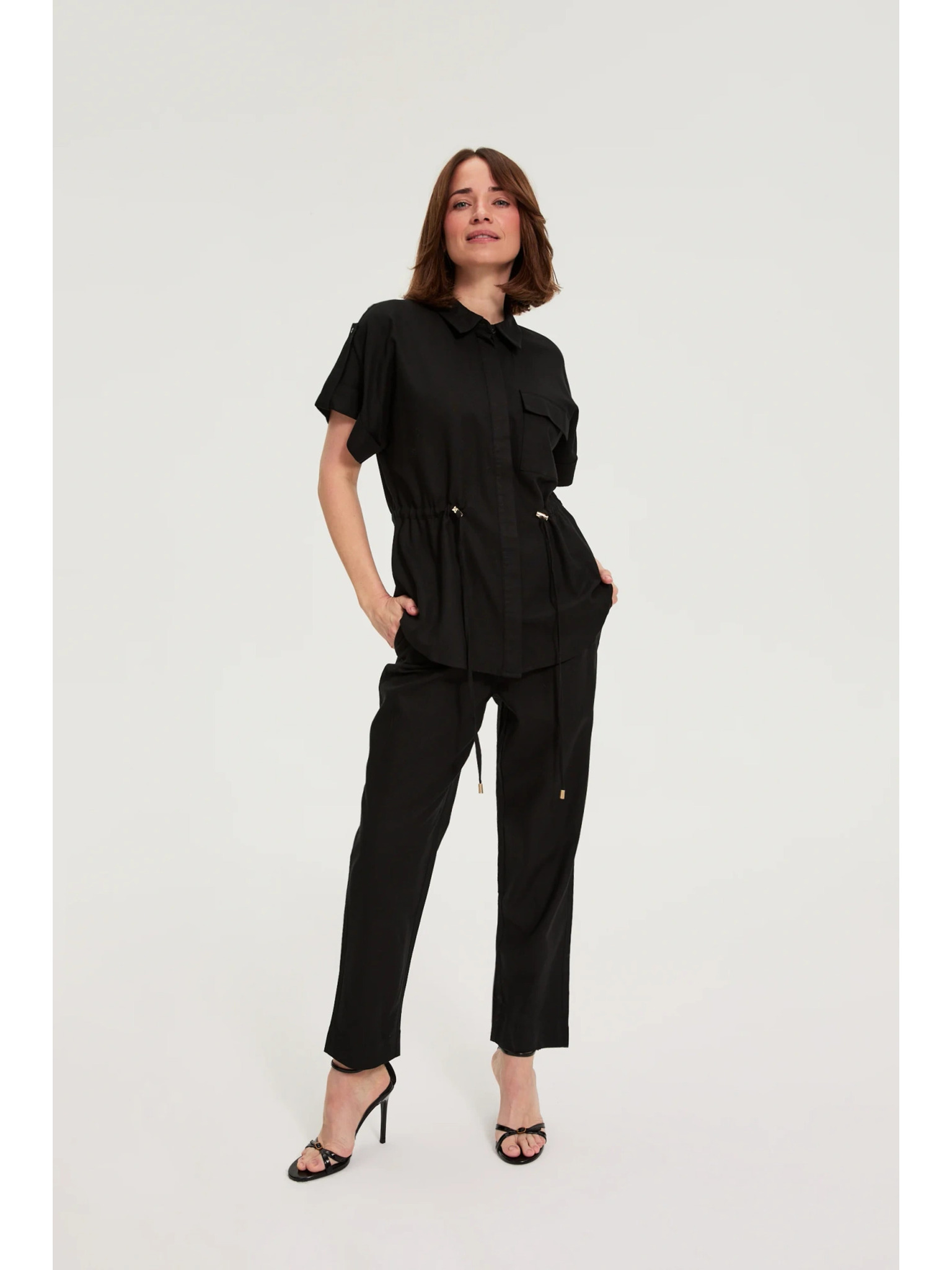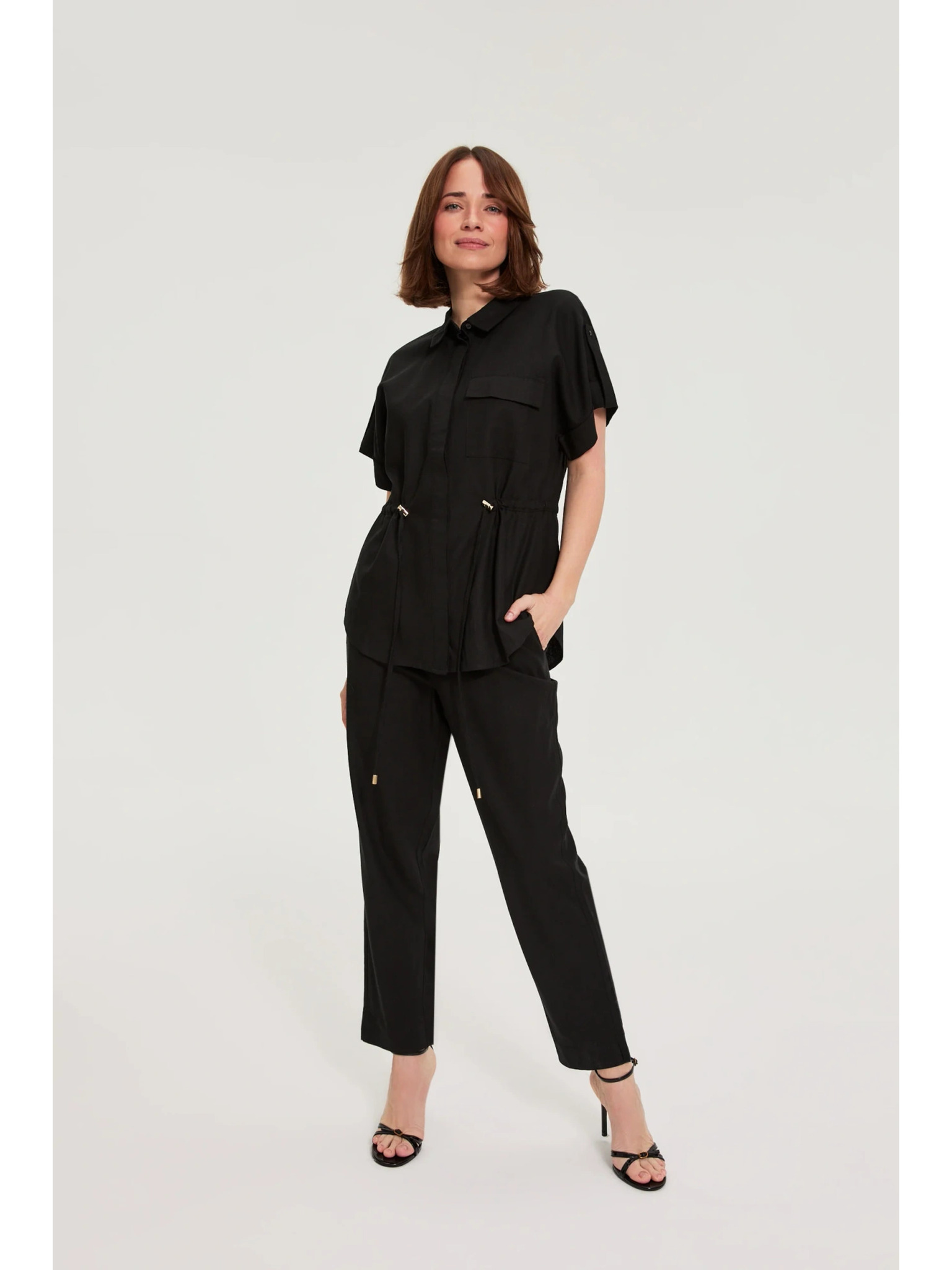 Hlače iz viskože in lana črne Moodo