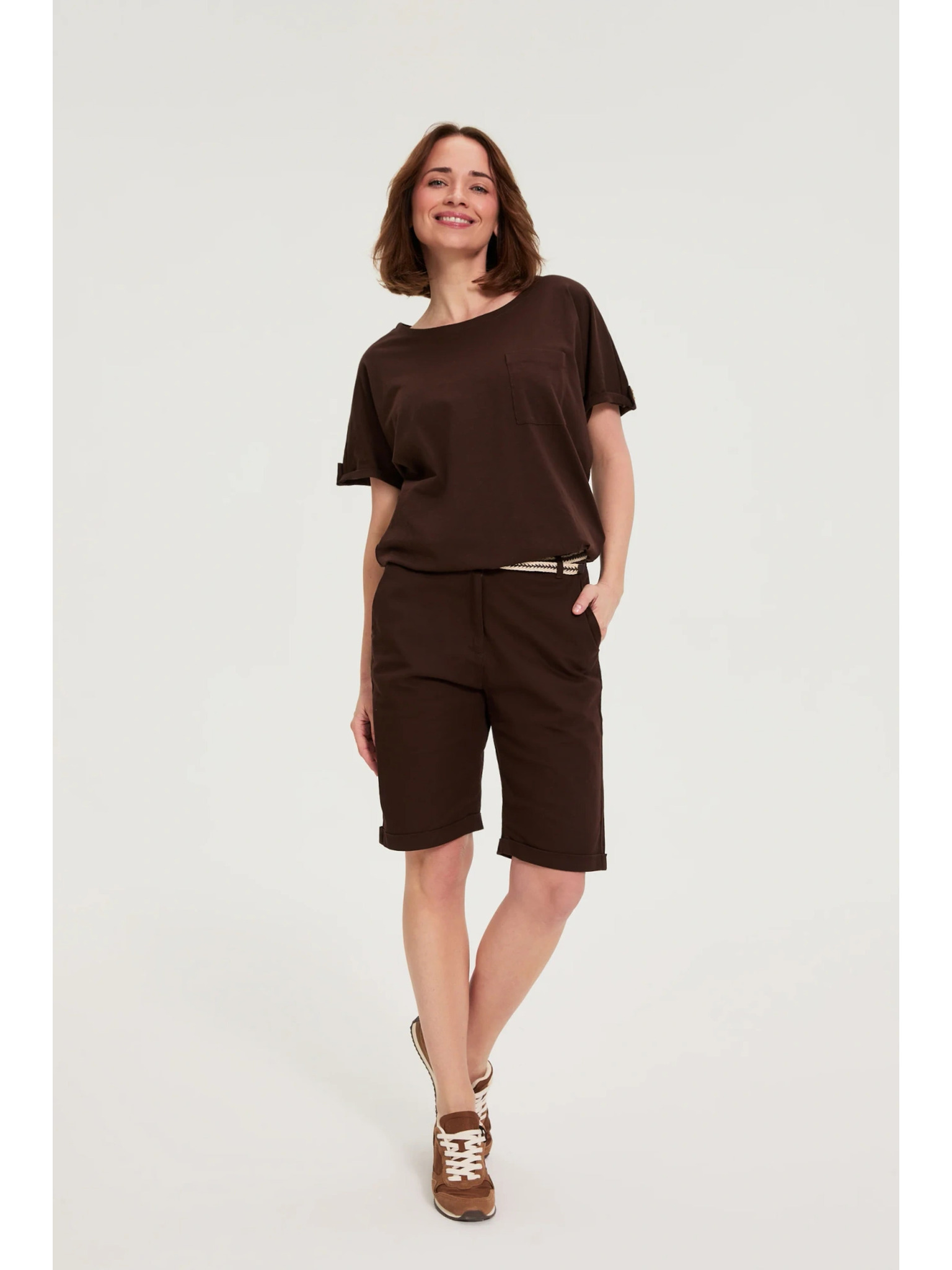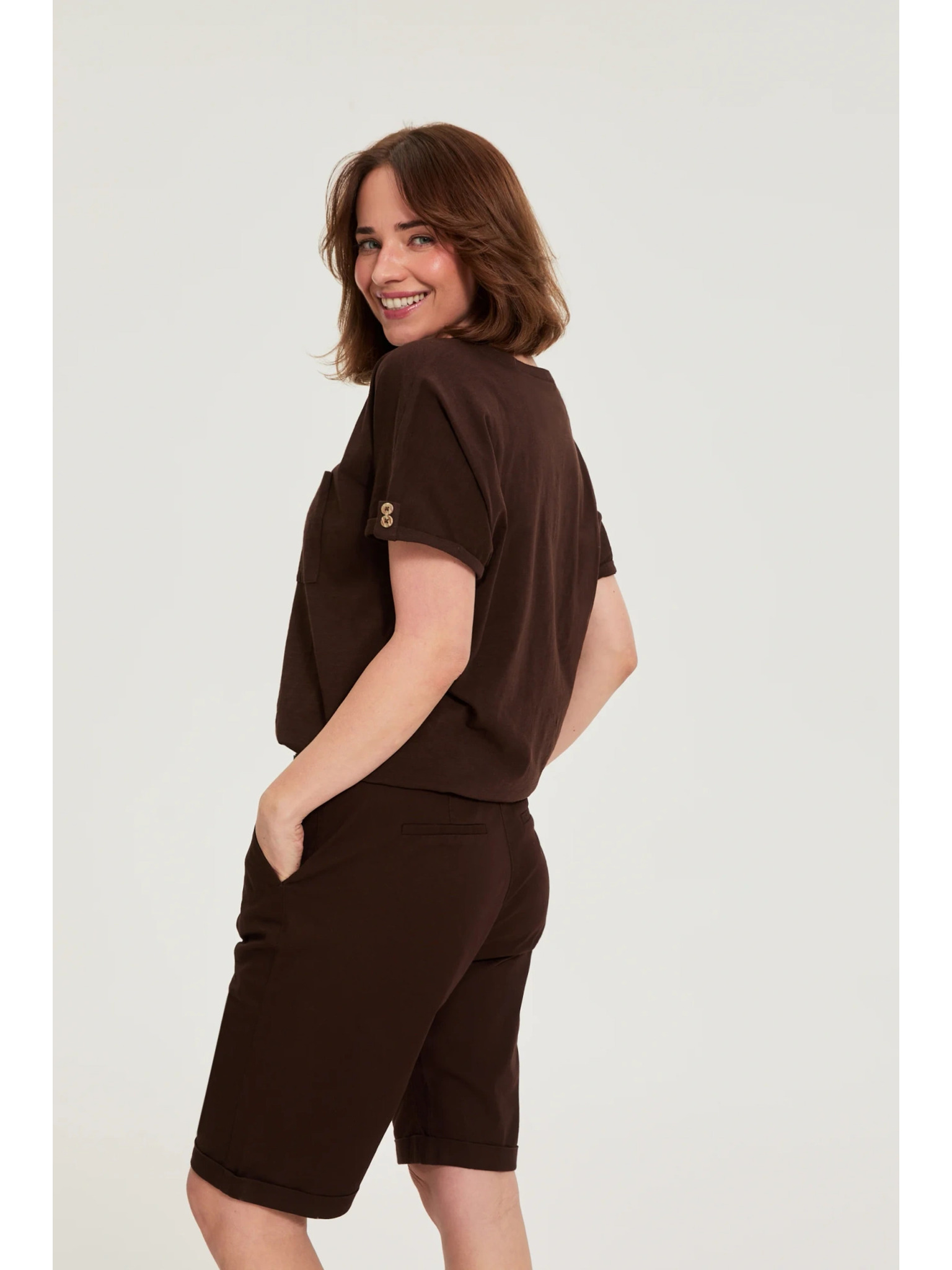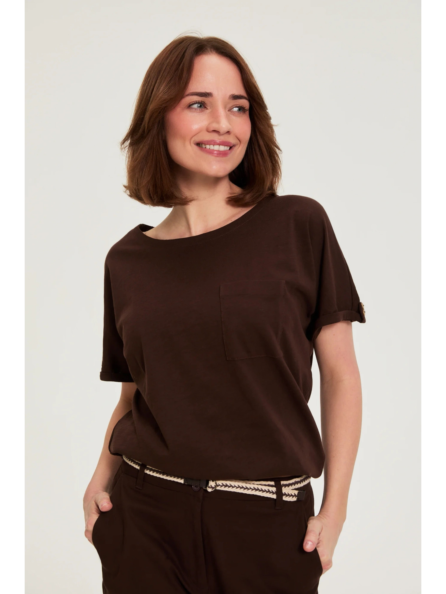Rjava majica s kratkimi rokavi Moodo