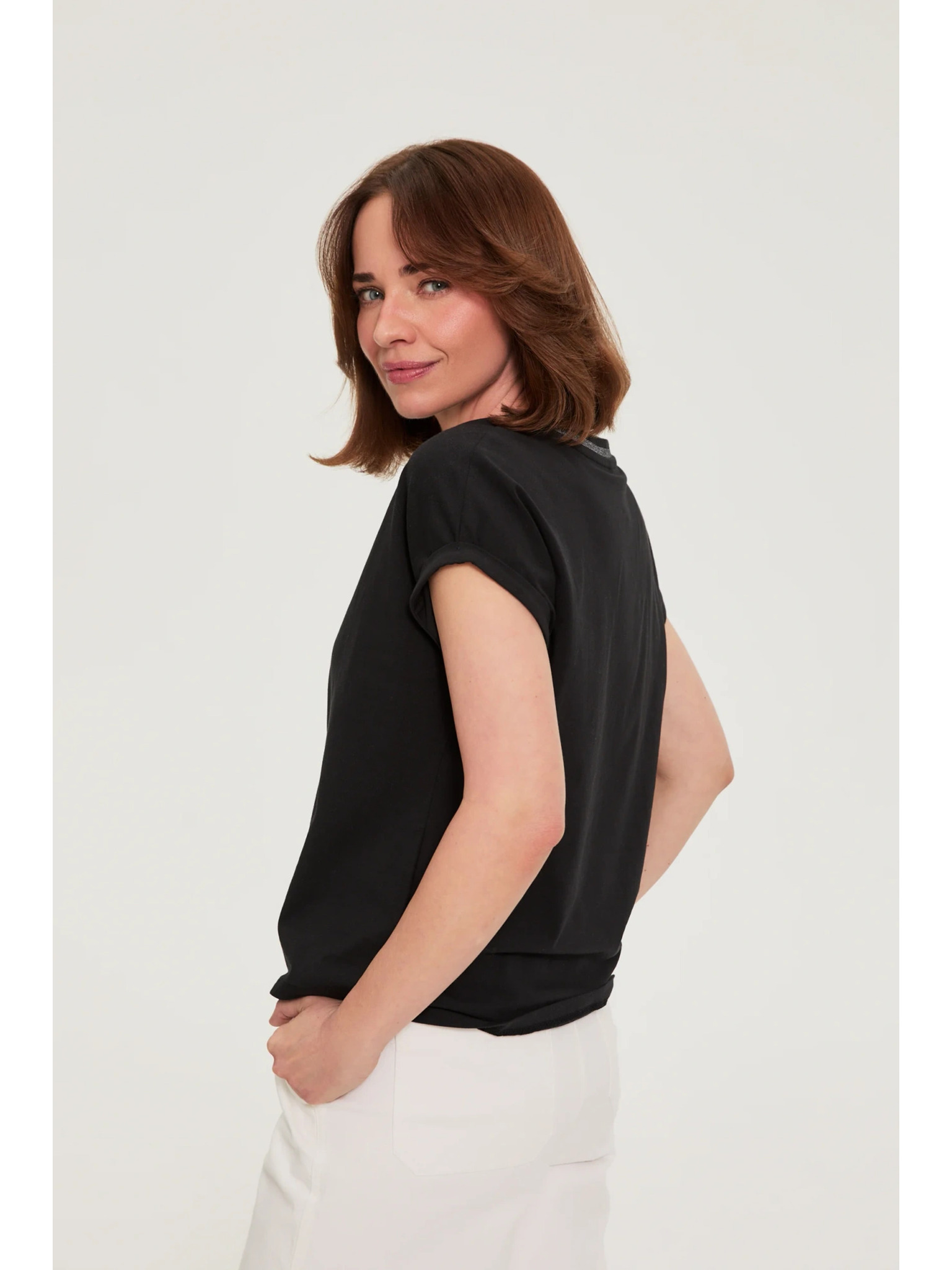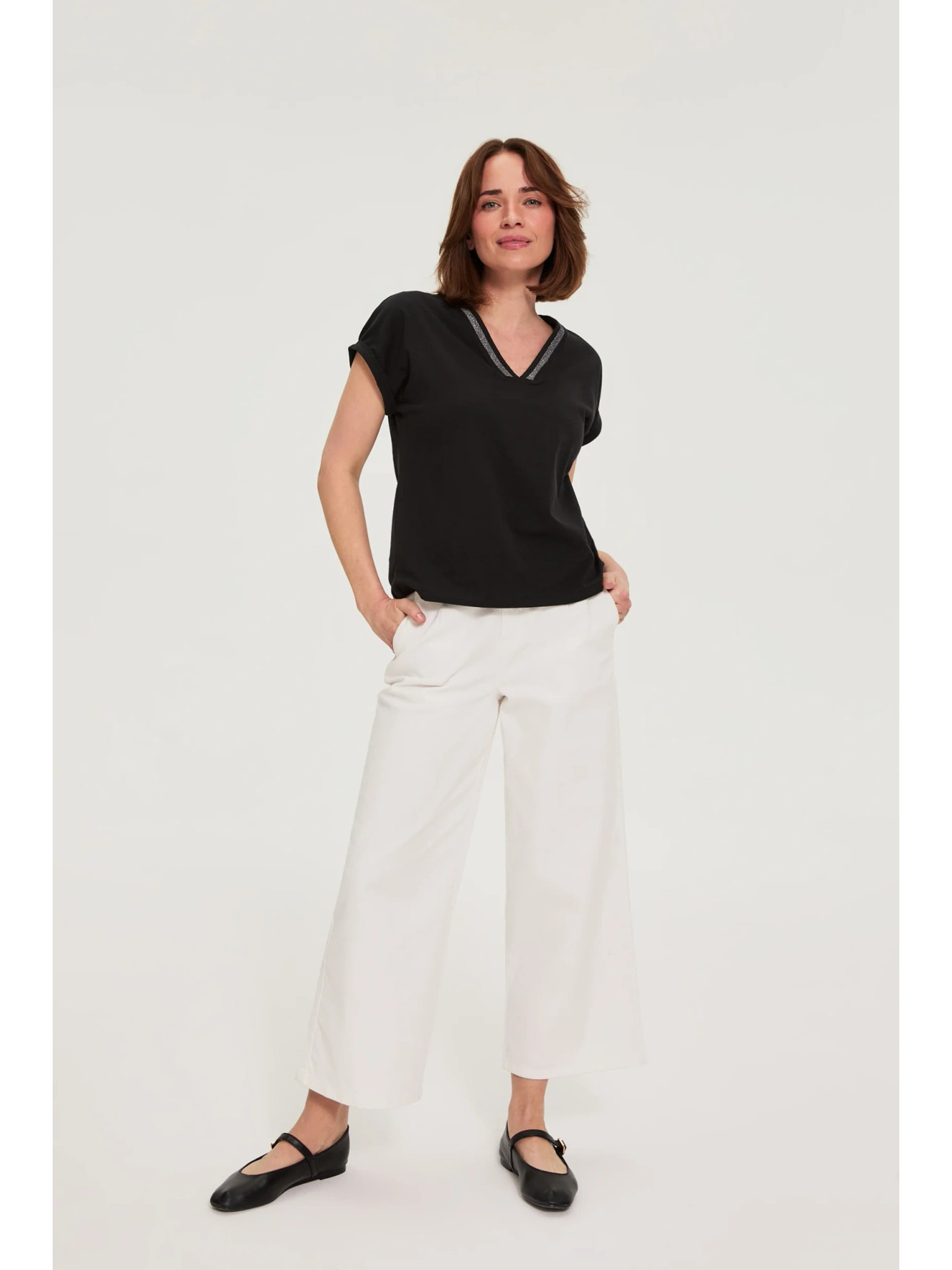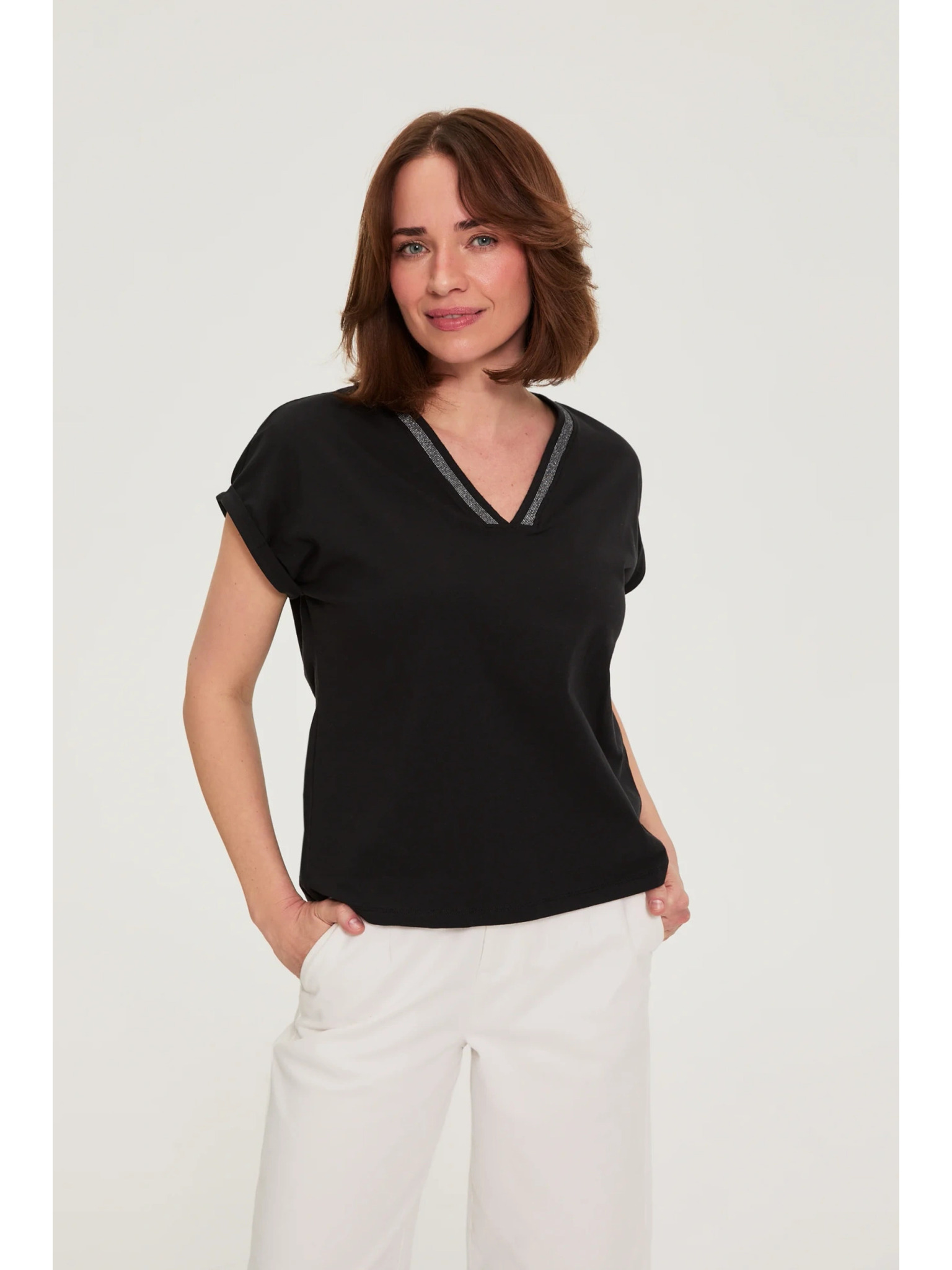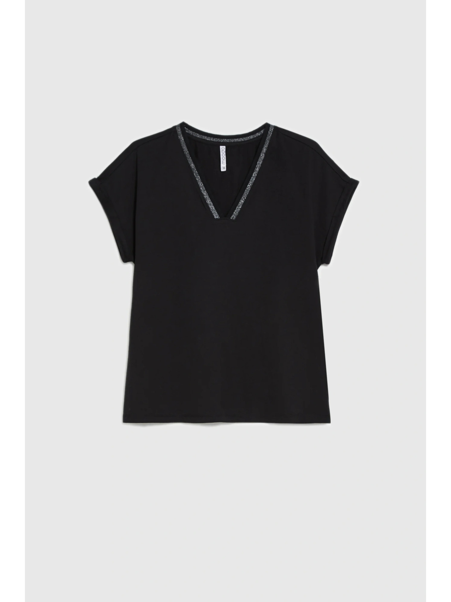 Bombažna bluza z V izrezom črna Moodo