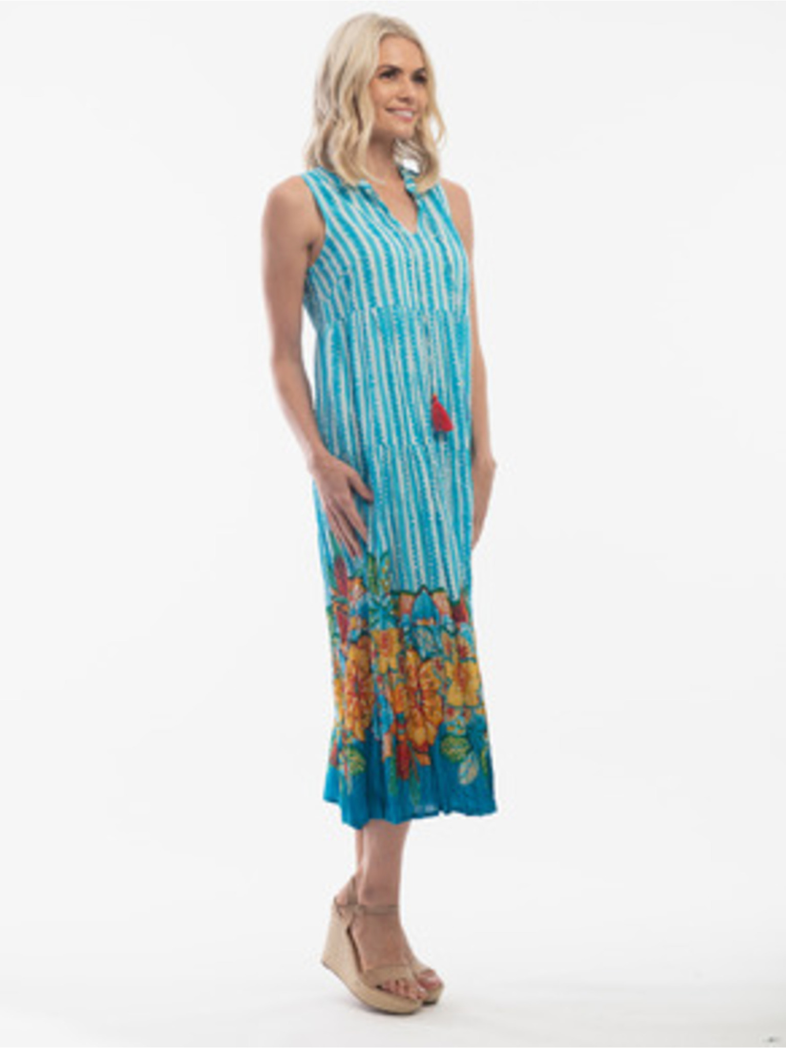 Turkizna ženska patternirana obleka