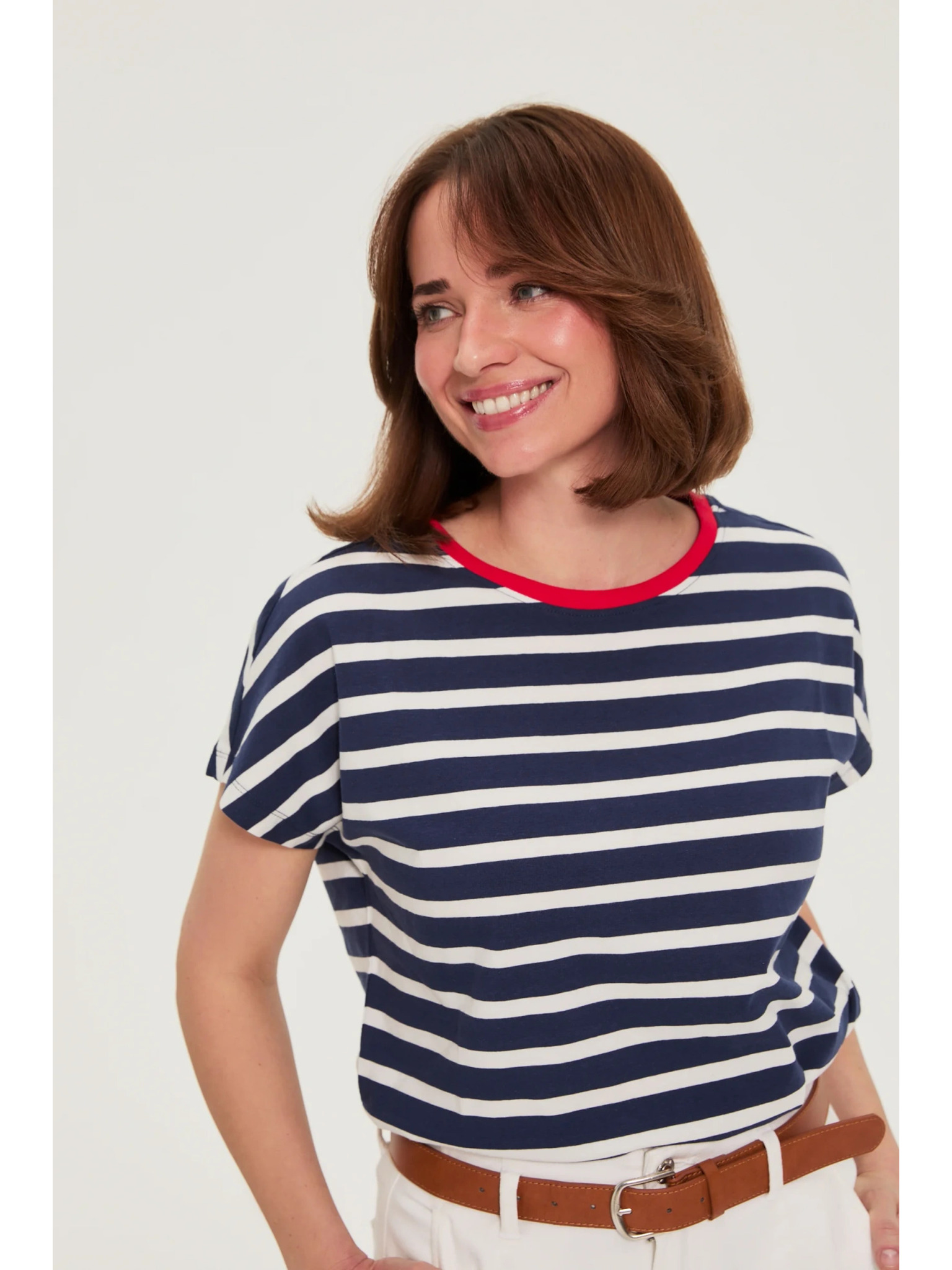 Oversize majica s črtami temno modra Moodo