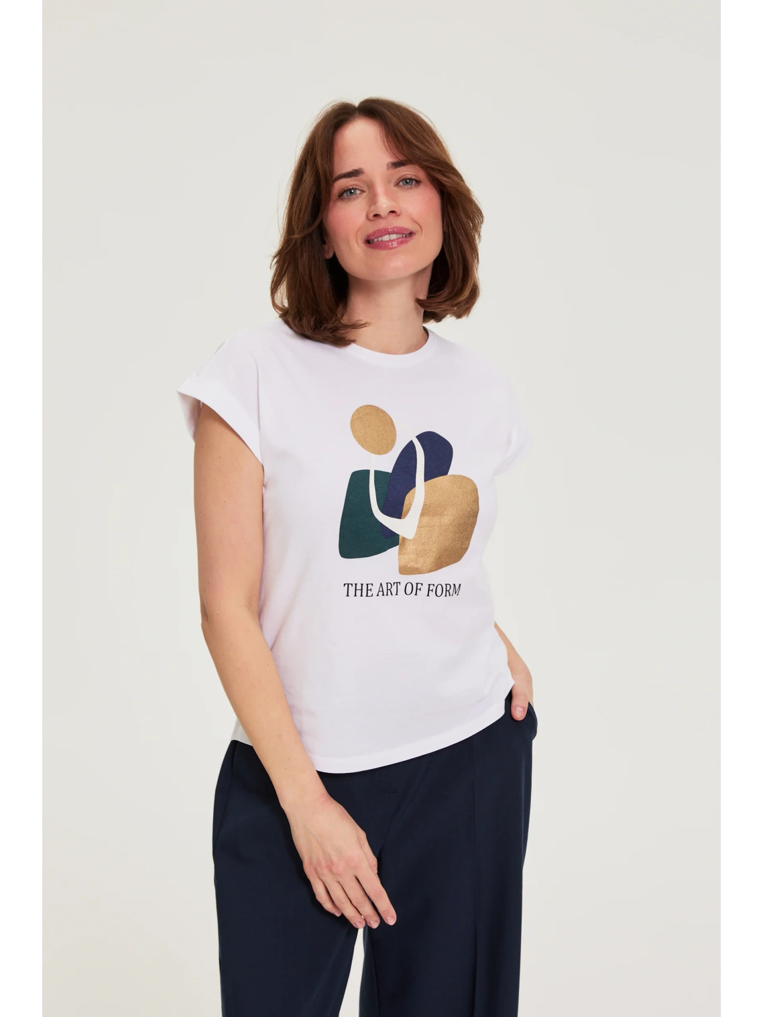 Bombažna bluza s potiskom bele barve Moodo