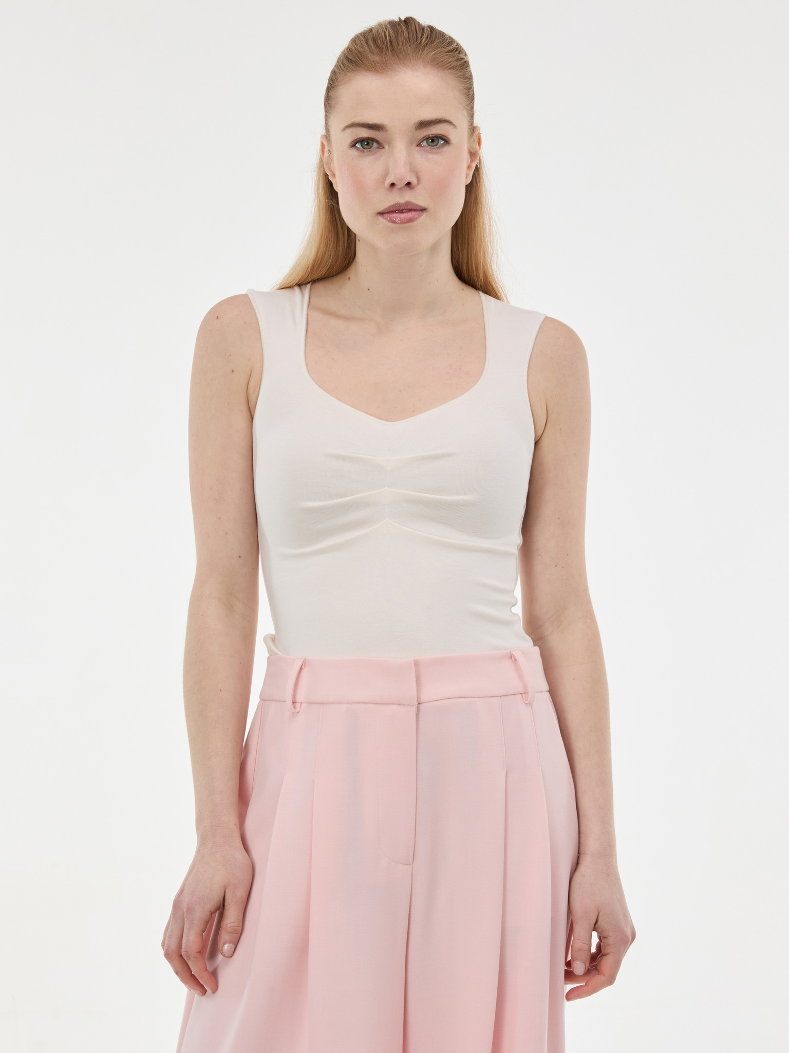 Kremni ženski top z naborki ORSAY