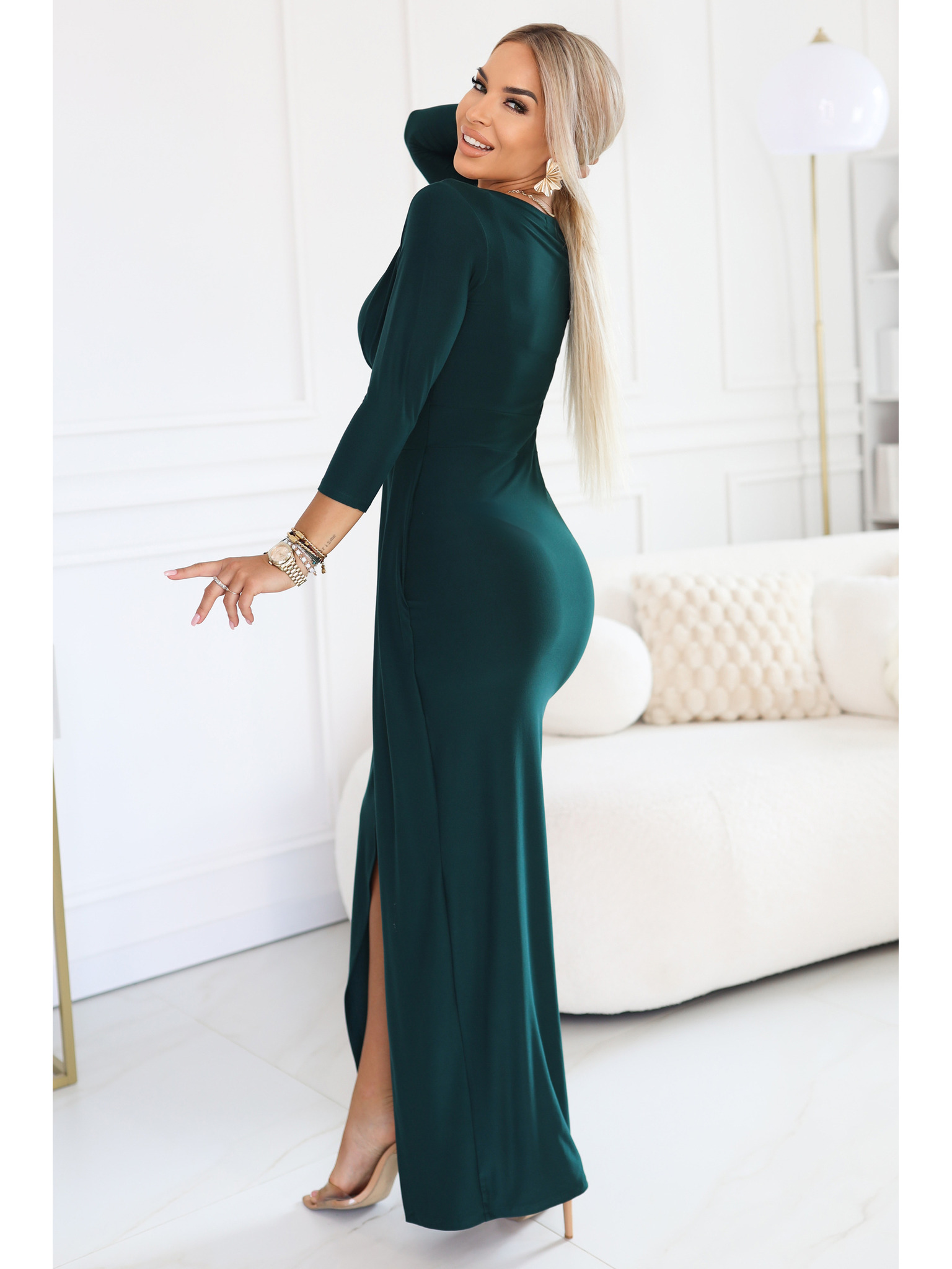 AURELIA dolge obleke z razporkom na nogi in diamantnim izrezom - steklenozelene