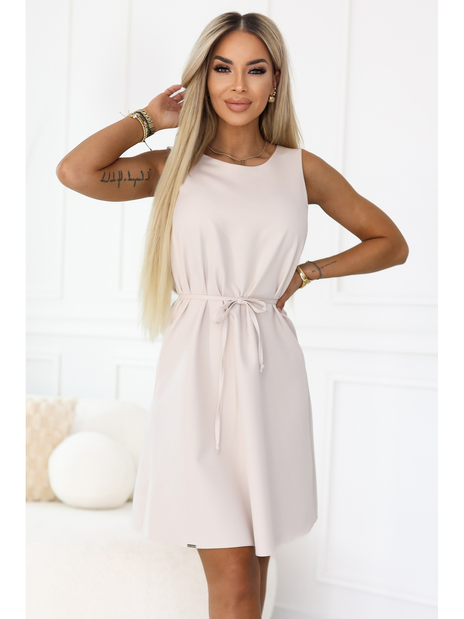 VICTORIA Trapezna obleka brez rokavov s pasom - masleno rumena