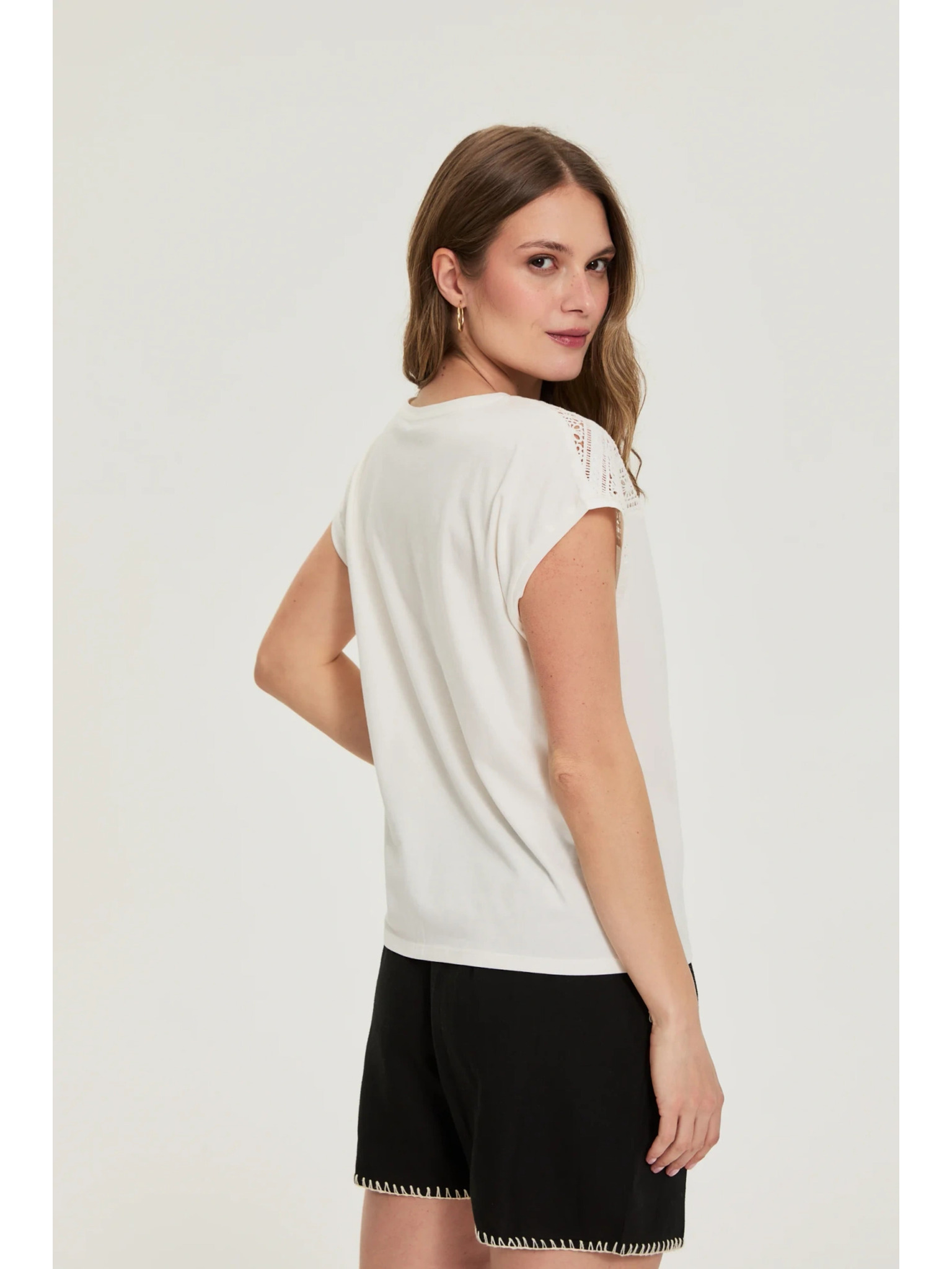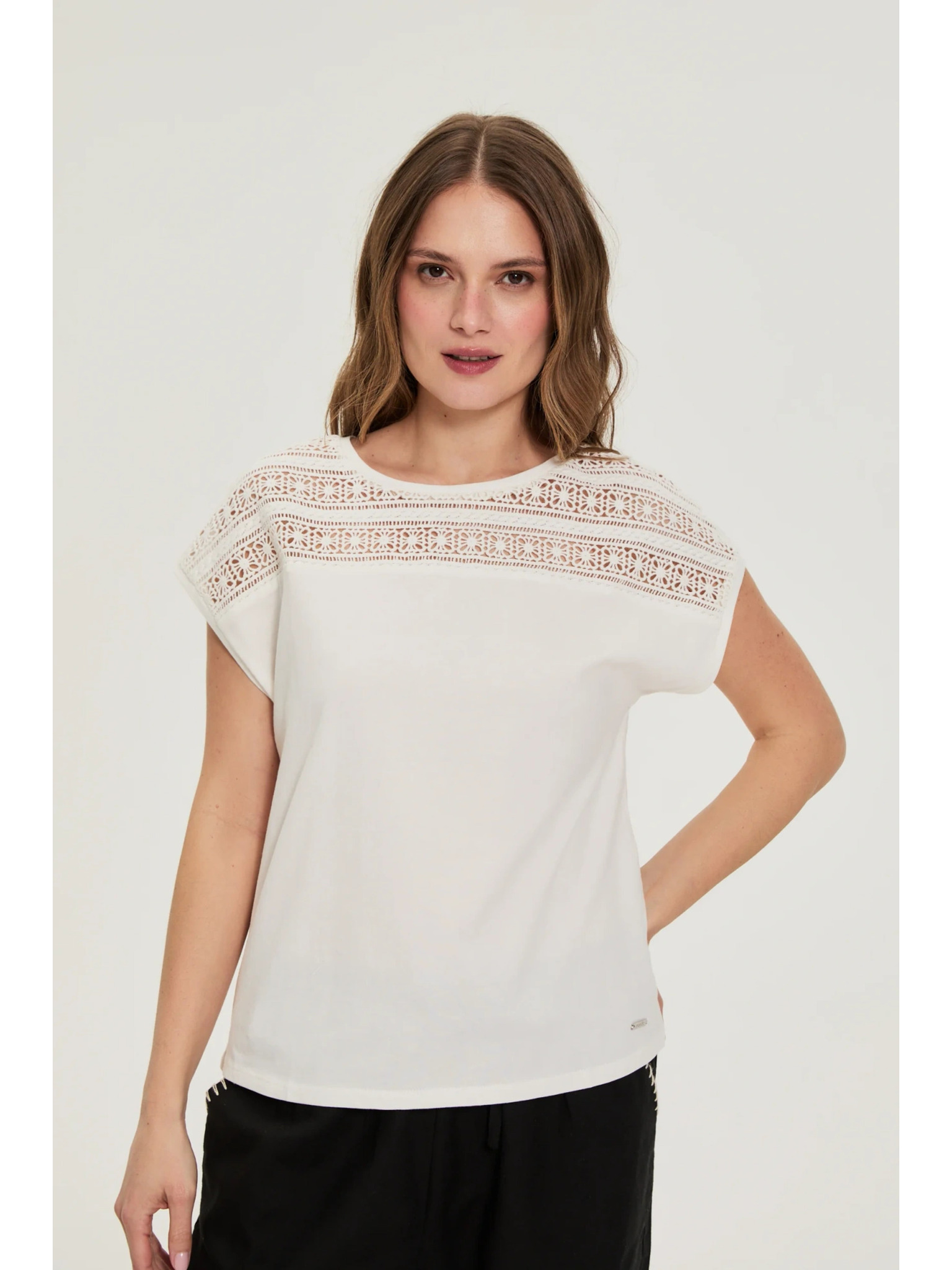Bluza iz bombaža s čipko bela Moodo
