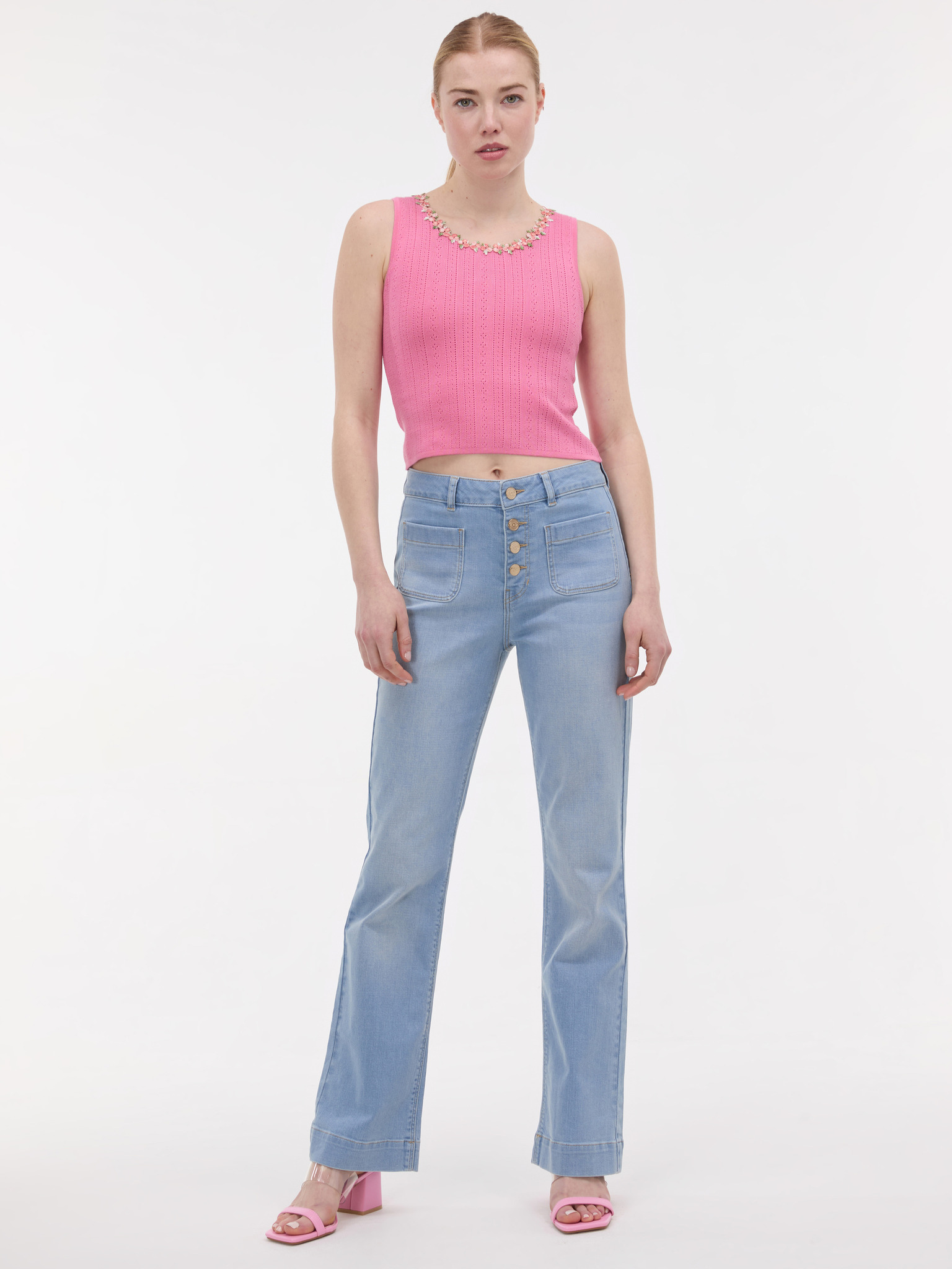 Svetlo roza ženski top z aplikacijo ORSAY