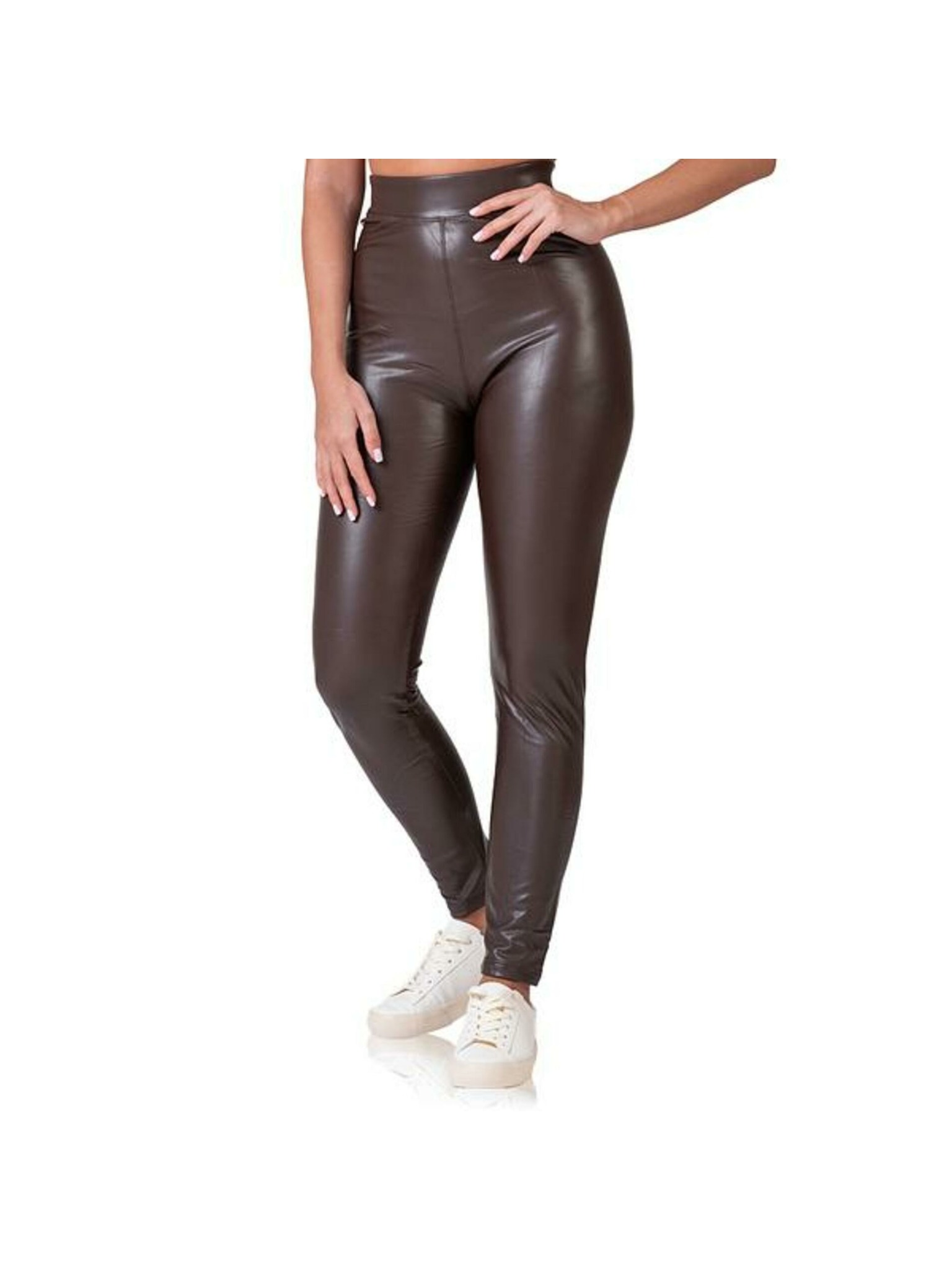 RELAX & GO LEATHEROPTIC LEGGINGS - Ženski legíny s videzom usnja - temno rjava